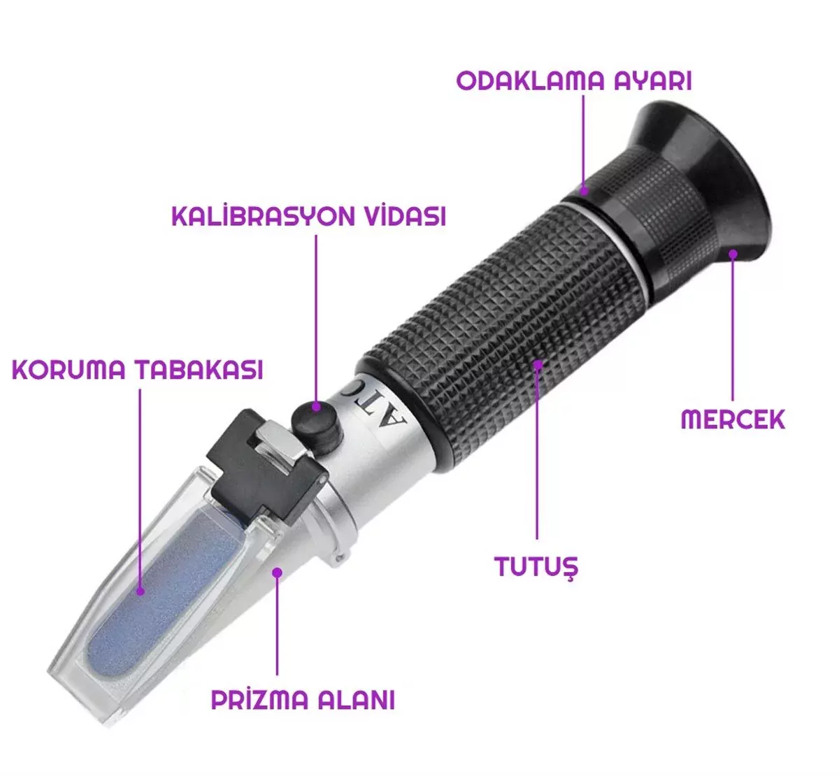 Brix refraktometre ürünü çözeltilerinizdeki şeker yoğunluğunu ölçmek için kullanılır.