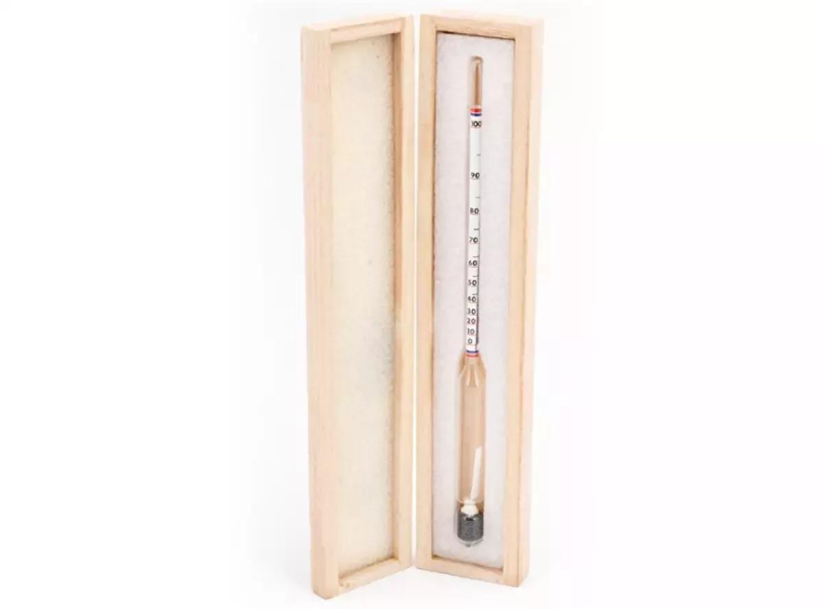 27cm Uzun Form Dansimetre Alkol-metre 0-100 Derece Alkol Oranı Ölçer - Tahta Kutulu