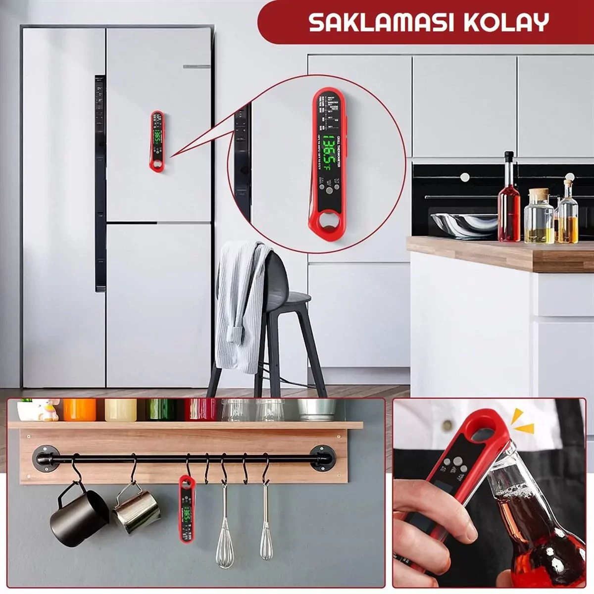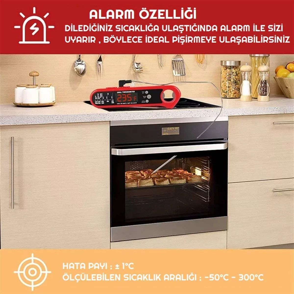 3 Farklı Problu Alarmlı Paslanmaz Çelik Dijital Termometre Yemek Gıda Sıcaklık Ölçer