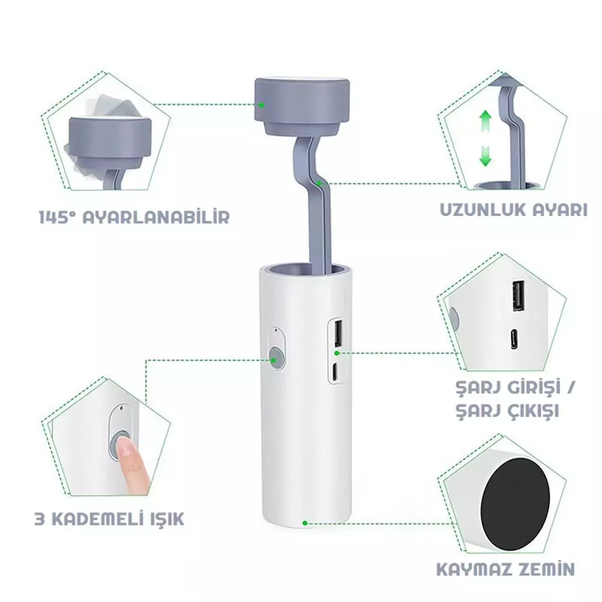 3 Kademe Işıklı Çok Fonksiyonlu Masa Lambası Powerbank Telefon Standı Fener 4in1 1200mAh