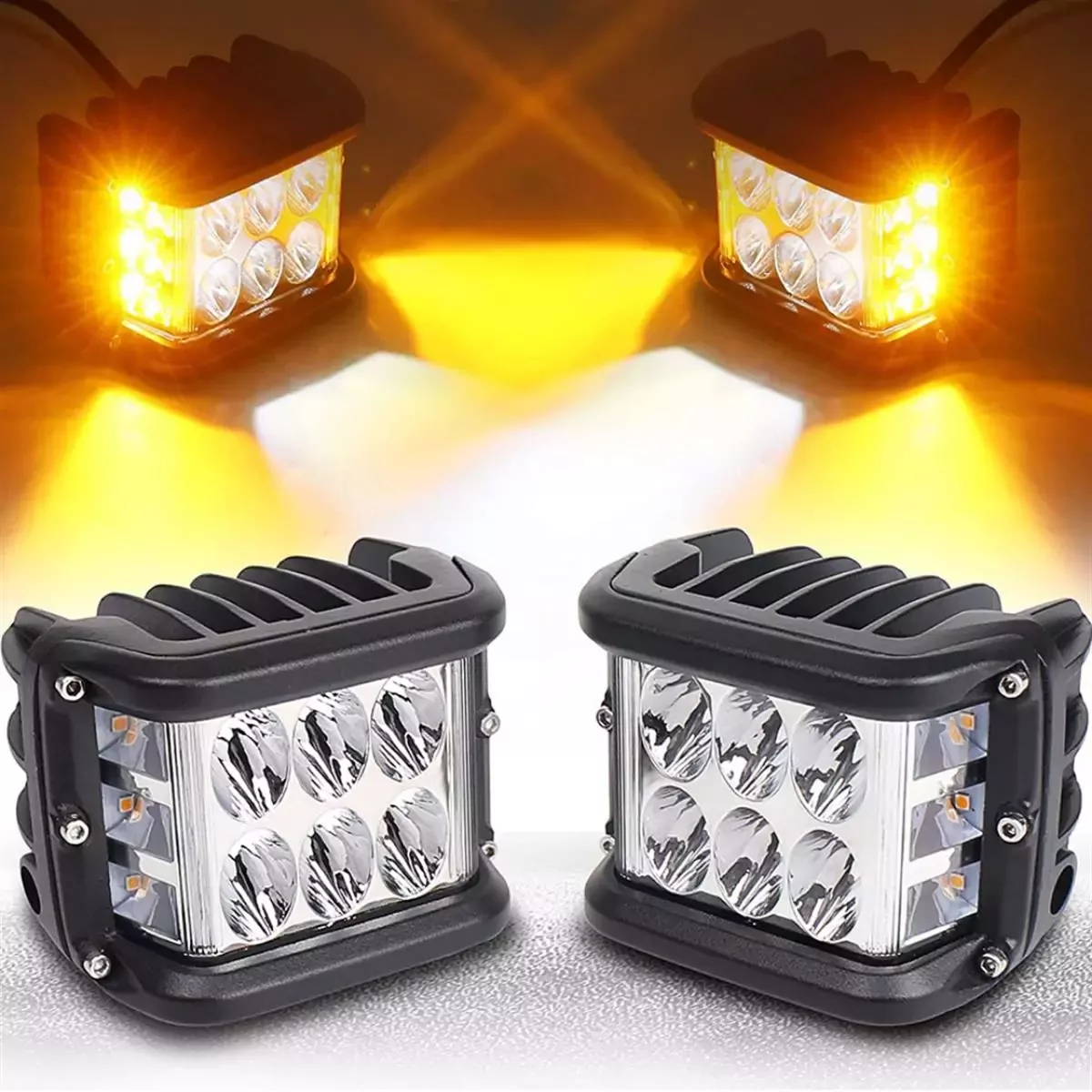 3 Mod Beyaz Turuncu Flaşlı 45W 12 LED Off Road Lambası Delici Yayıcı Motosiklet Sis Farı