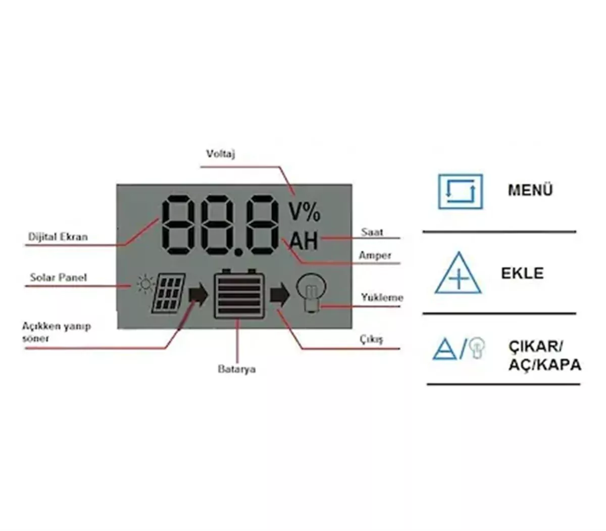12 Volt Güneş panelleri ile sorunsuz çalışır ancak 24 Volt panel bağlandığında da çalışmaya ve şarj etmeye devam etmekle birlikte; ekran görüntüsü kaybolur. Önce panel sonra aküyü söküp takarsanız geri gelir ancak kullanım sırasında görüntü kaybolur. İlk kullanımda aküyü bağlayıp menüsünde işlem yapacaksanız yapıp sonra panel bağlantısını yapıp o şekilde kullanabilirsiniz!