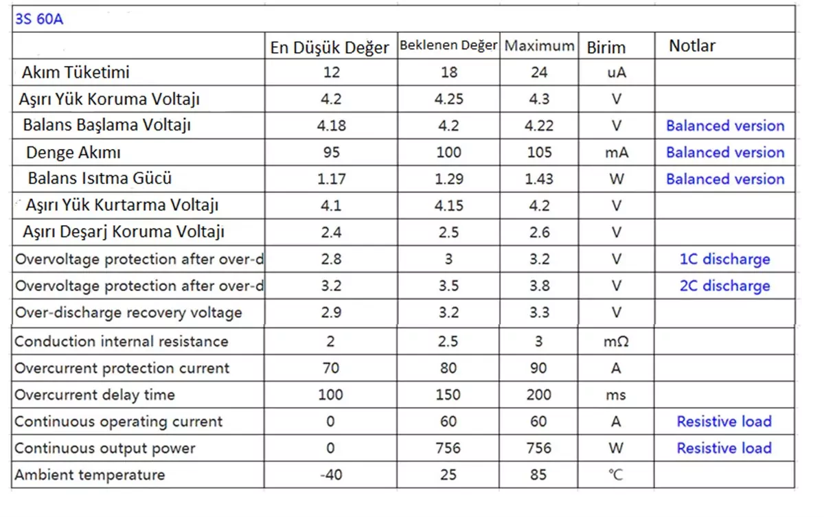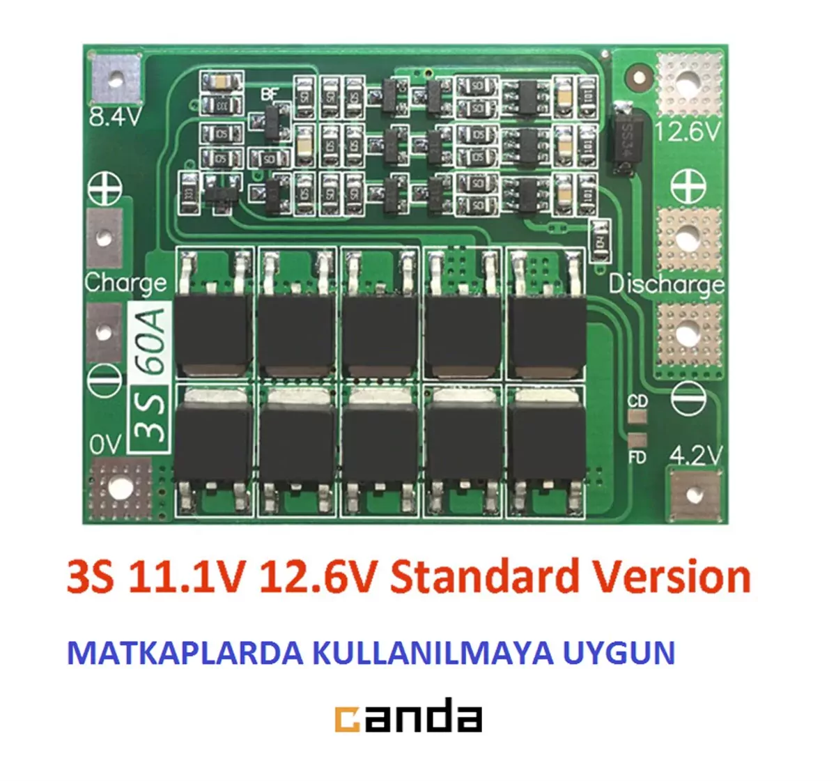 1 x 3S 60A Standart Versiyon Lityum Pil Şarj Koruma Devresi