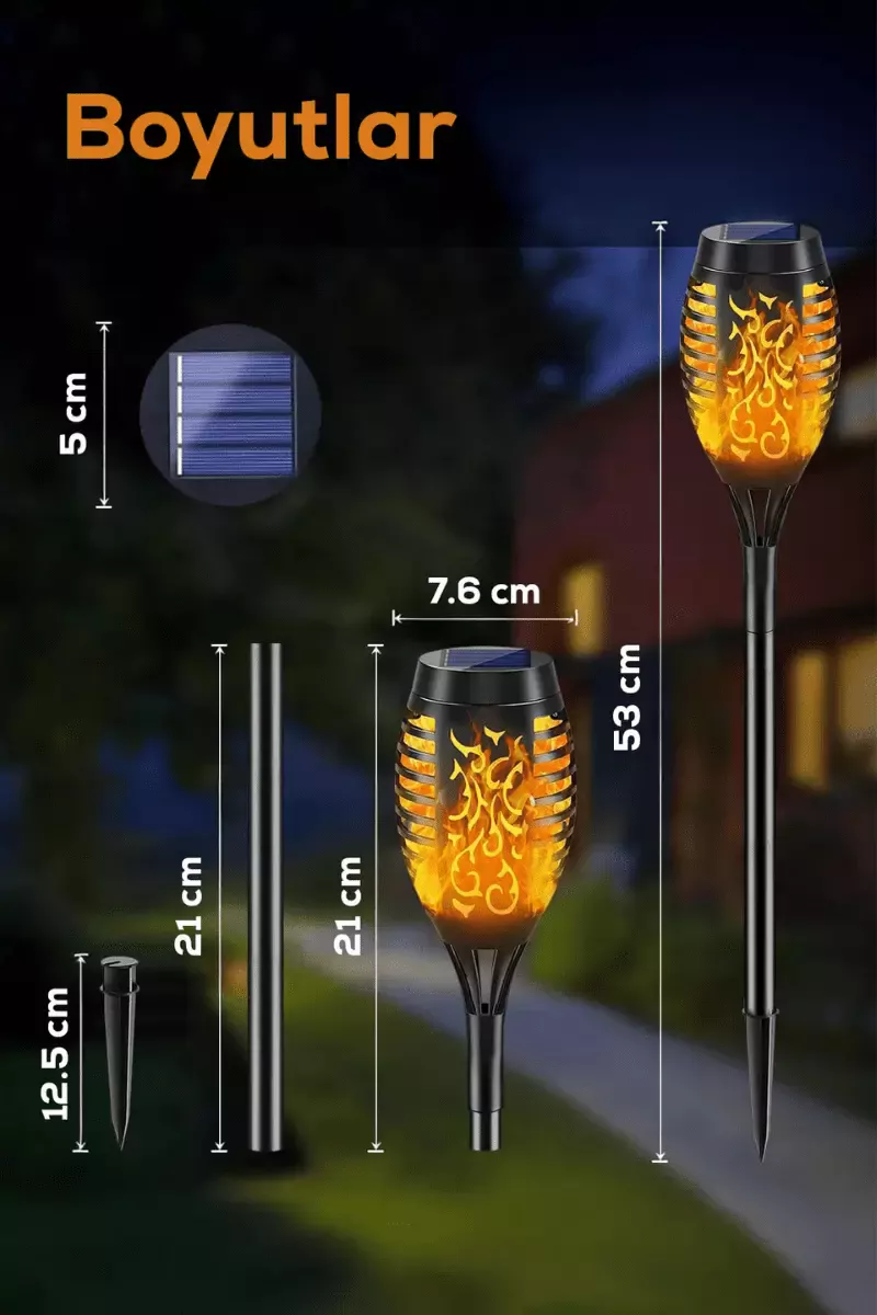 Paket İçeriği: 4 x Alev Efektli Meşale Bahçe Aydınlatma Lambası ile birlikte gelir.
