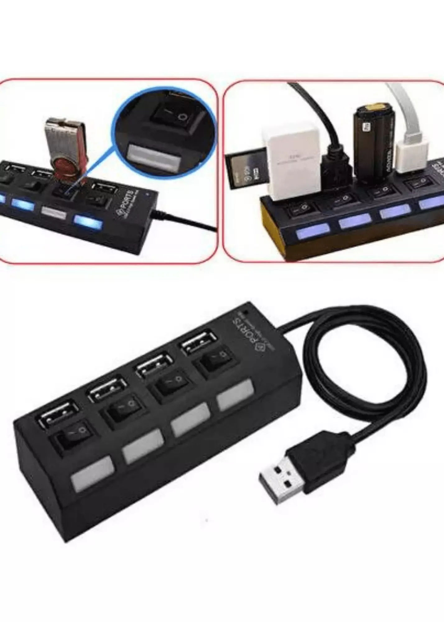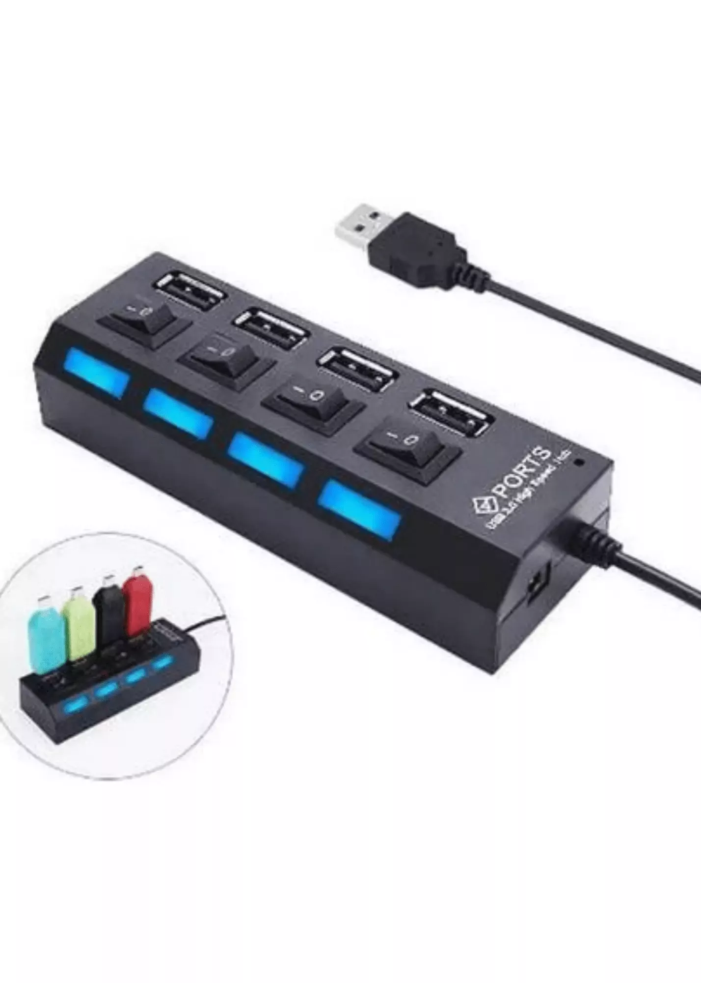 4 Port USB 2.0 Çoklayıcı Çoğaltıcı Hub Anahtarlı Işıklı On Off
