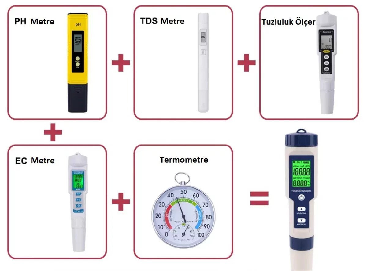 5in1 Dijital PH/TDS/EC/Tuzluluk/Sıcaklık Metre Işıklı Test Cihazı İletkenlik Kalem Model