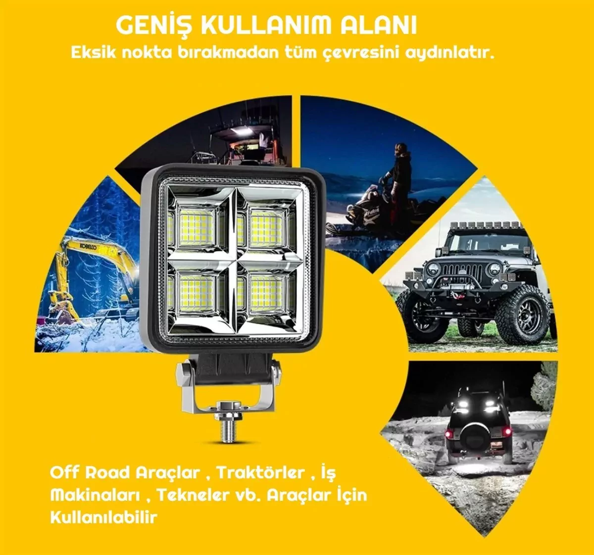 Diğer 64 LED Kare Beyaz Su Geçirmez Off Road Tekne Çalışma İş Makinesi Lambası 35mm
