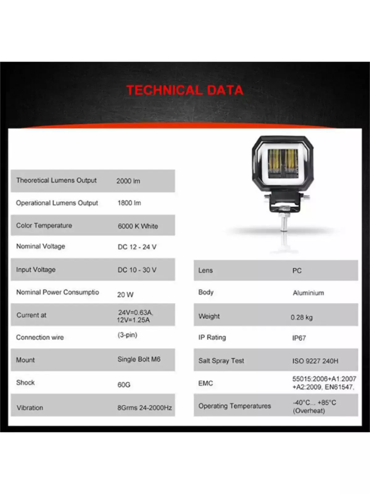 6D Dikdörtgen Off Road Spot Sis Lambası 12Cm 2 LED 20W Çalışma Işığı