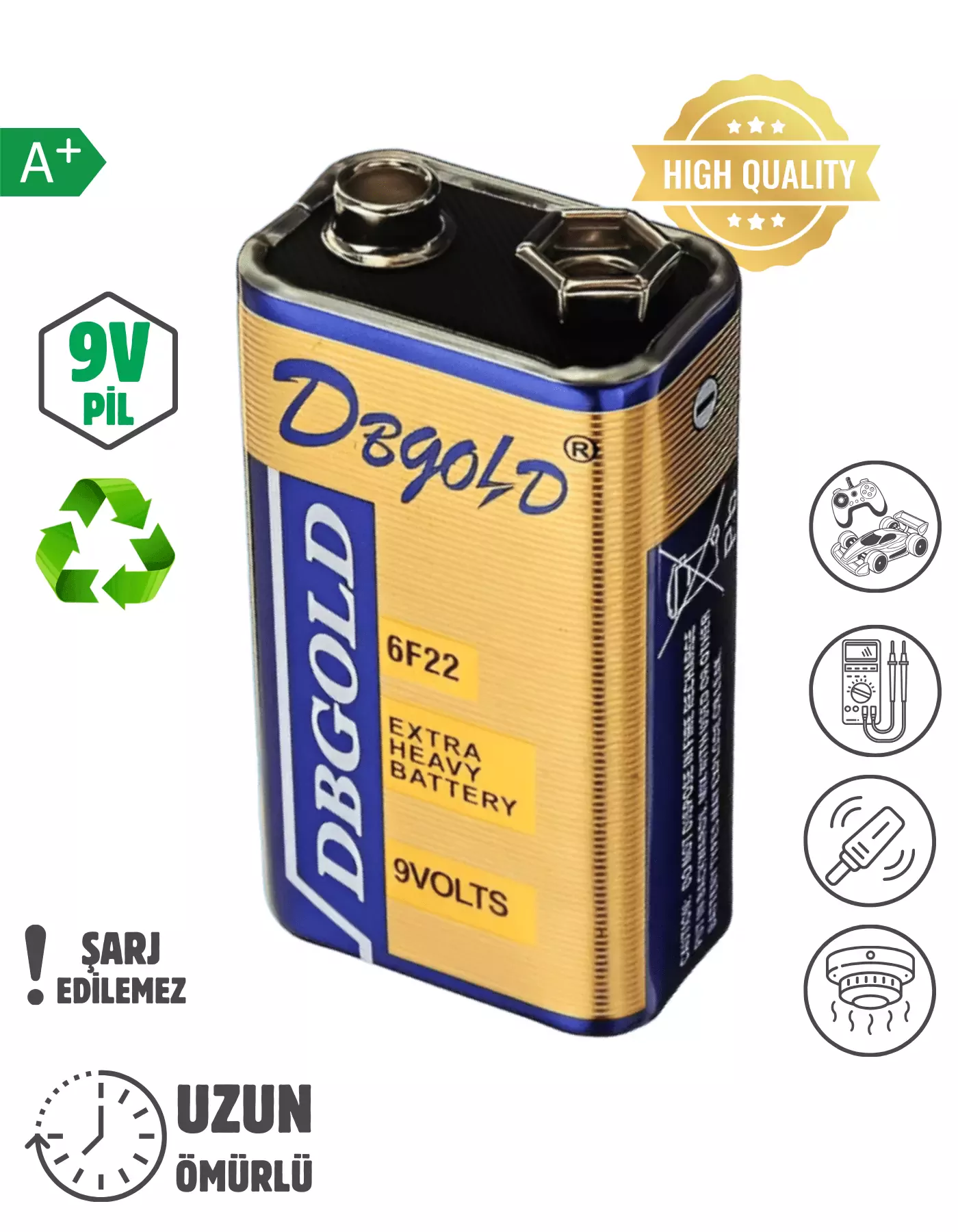 9 Volt Pil - 9V Multimetre Dedektör Oyuncak Araba Drone Kumanda Pili -9Volt Çift Başlı Kare Pil