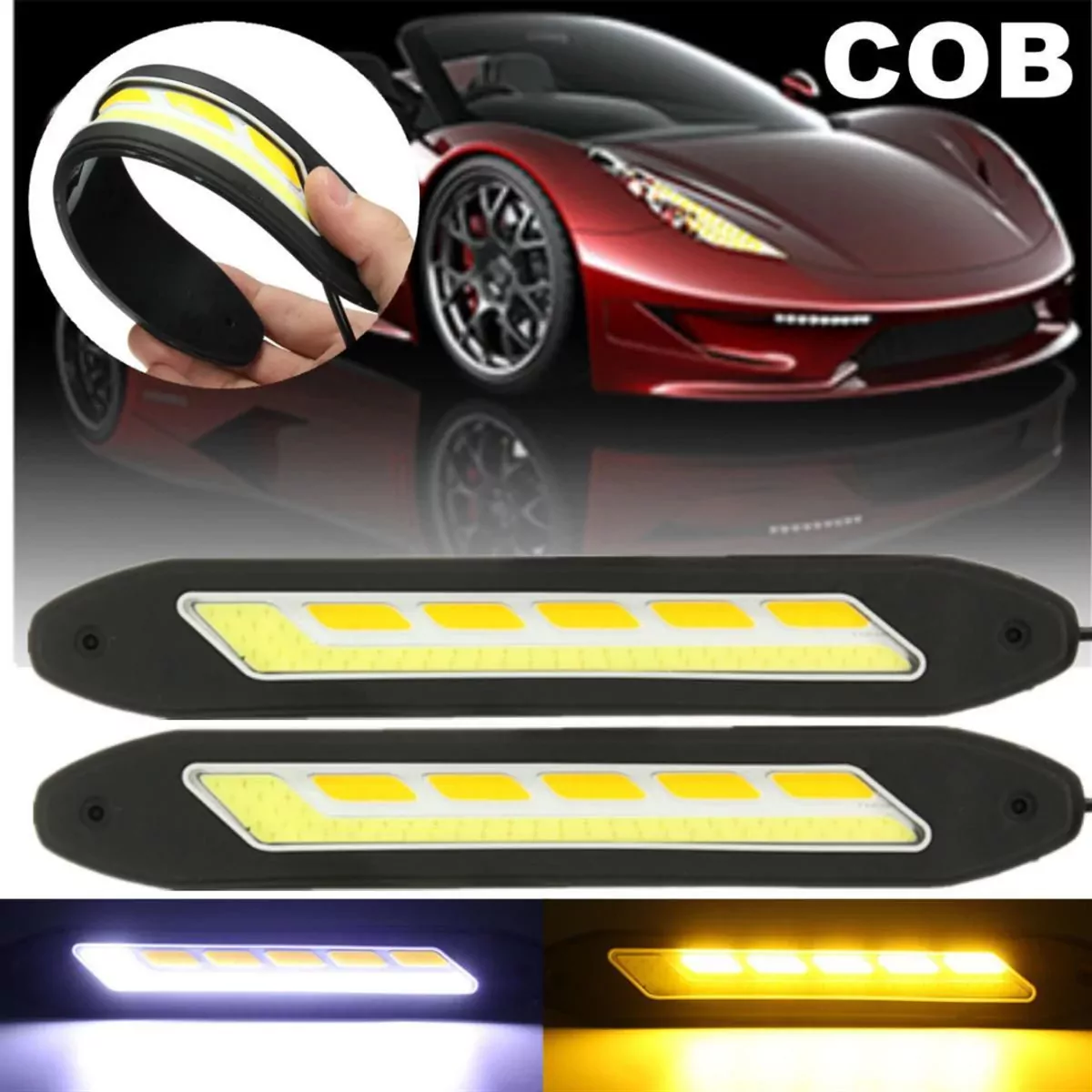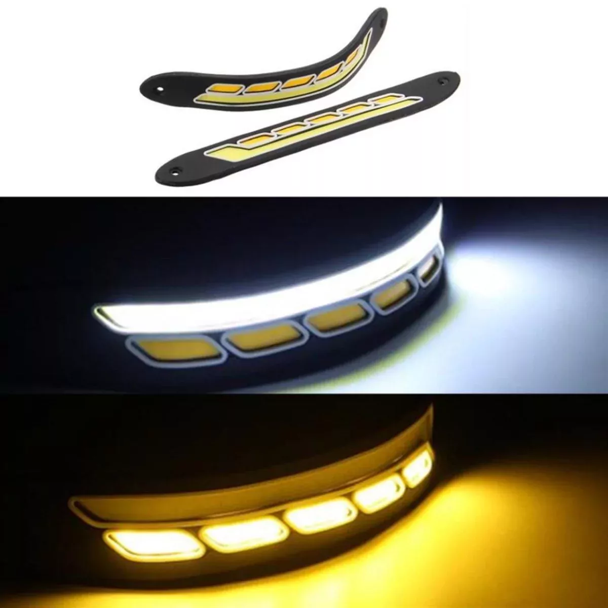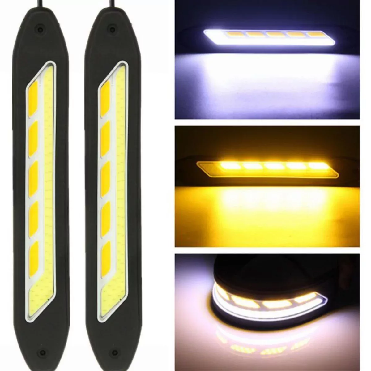 Asimetrik COB DRL Gündüz Ledi Su Geçirmez Sinyalli Esnek Gündüz Farı Sarı-Beyaz