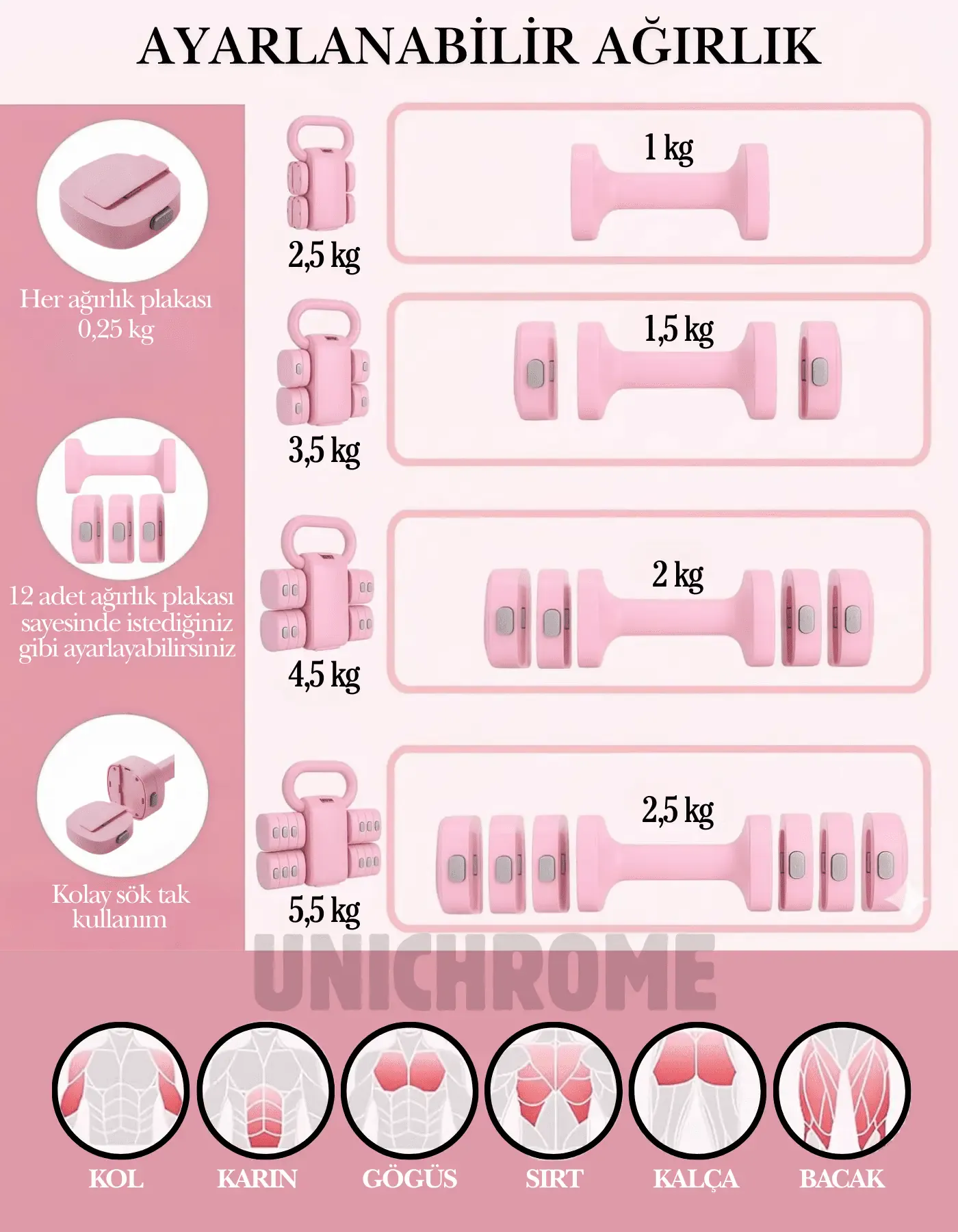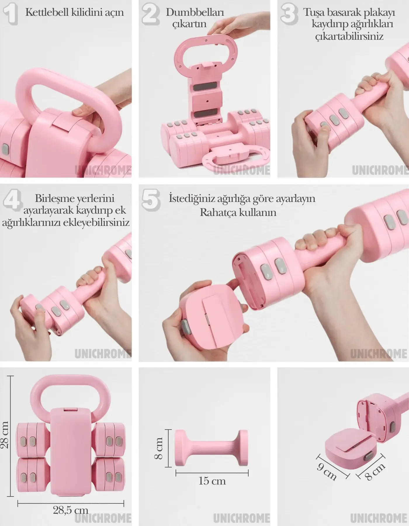 Ayarlanabilir Dambıl & Kettlebell – 5,5 Kg Çok Fonksiyonlu Spor Aleti