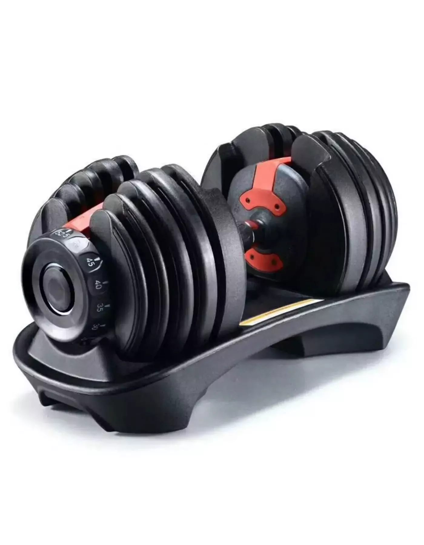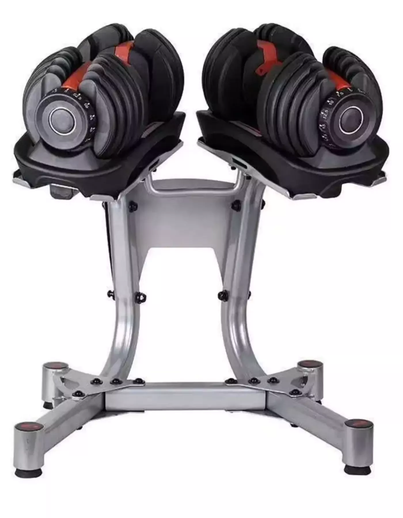 2,5’dan 24 kg’a kadar ayarlanabilen ağırlıklarıyla tek dambıl ile aslında 15 farklı kiloda dambıl satın almış olacaksınız. Plakalar standın üzerinde bırakılarak ya da alınarak ağırlık ayarı yapılır.