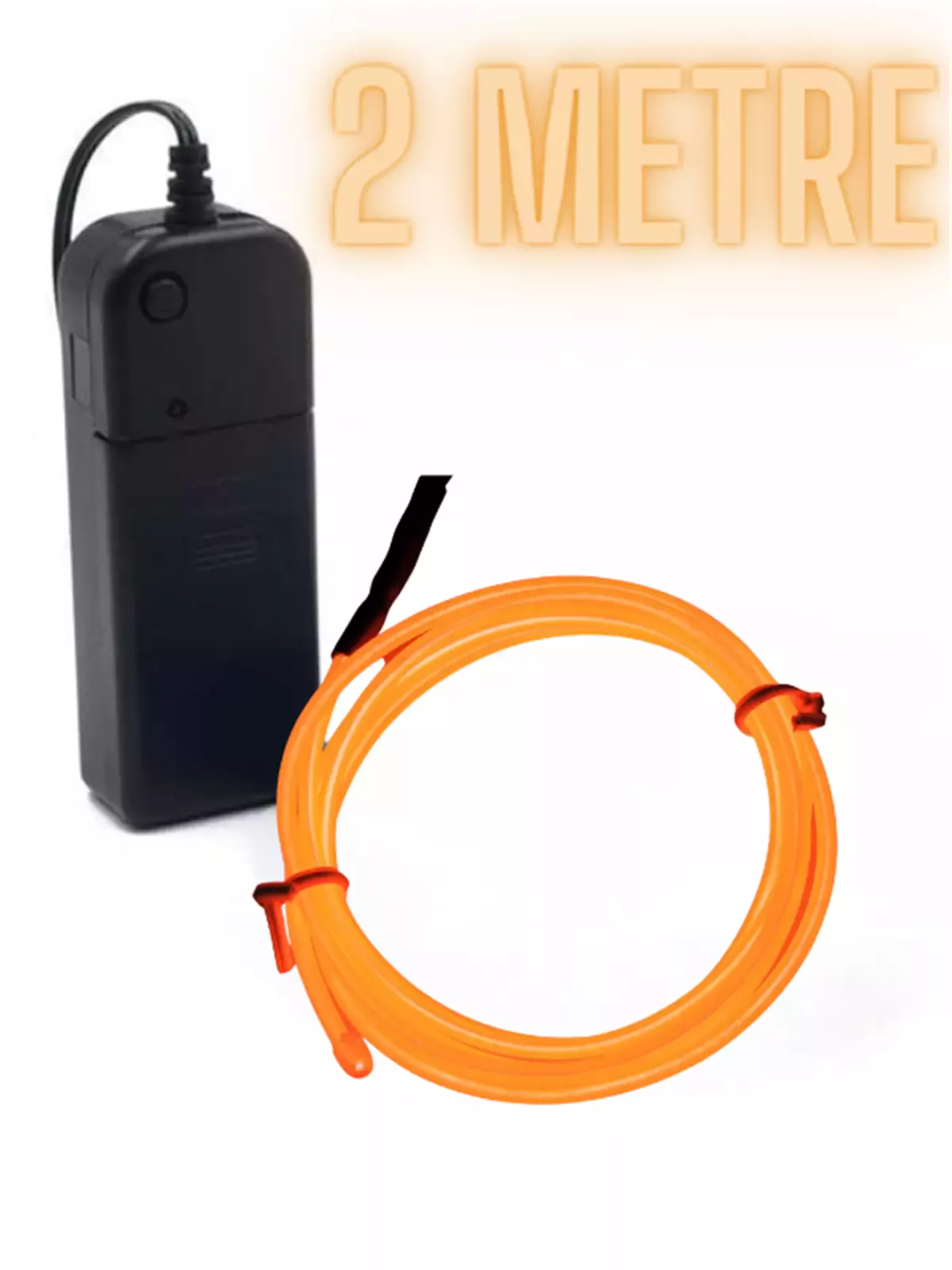 Bataryalı Araç Içi Aydınlatma Ip Şerit Torpido Led Ip Neon Dekoratif Turuncu 2 Metre