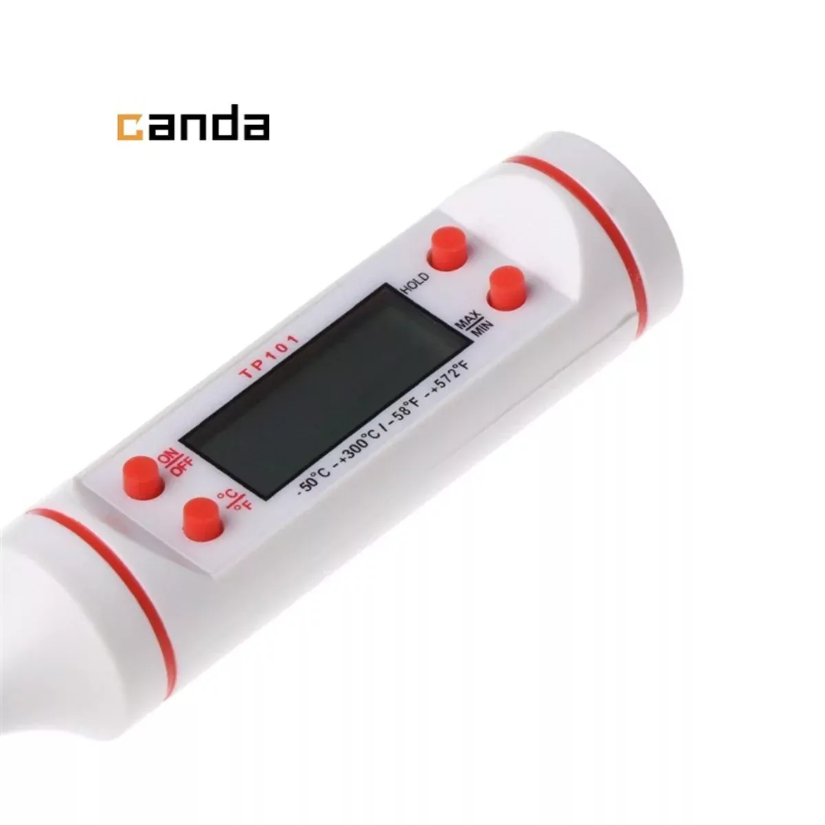 Ürün Bilgisi: Malzeme: Paslanmaz çelik + ABS Boyutu: 24 cm Renk: Beyaz Çalışma voltajı: 1.5 V (dahil) Sıcaklık aralığı:-50 ~ + 300℃ (-58'F ~ + 572'F) Kullanım: Mutfaktaki herhangi sıvı veya batırmaya uygun katı gıdalar Ürün Özelliği: Mini dijital pişirme termometresi uzun problu Düşük pil hissi ve ekran. Hafif ve taşınabilir Son ölçü hafızası. Güç tasarrufu için 15 dakika otomatik kapanma (opsiyon). Mutfak yemekleri için harika araç Düğme Fonksiyon Açıklaması: 1.ON / OFF: Anahtarı fonksiyonu 2.C / F: Santigrat/Fahrenheit dönüşümü 3.HOLD: Sıcaklık kilidi fonksiyonu, sıcaklık kilitli olduğunda düğmesine basın, sonra kaldırmak için kilit fonksiyonuna basın. 4.MAX / MIN: Yüksek sıcaklık ve düşük sıcaklık belleği, önceki yüksek sıcaklığı görüntülemek için bu düğmeye basın, daha sonra önceki düşük sıcaklığı görüntülemek için basın ve daha sonra sıcaklık ölçümünü geri yükleyin. Paket İçeriği: TP101 Gıda Termometresi Şeffaf Kabı 1 Adet Pil