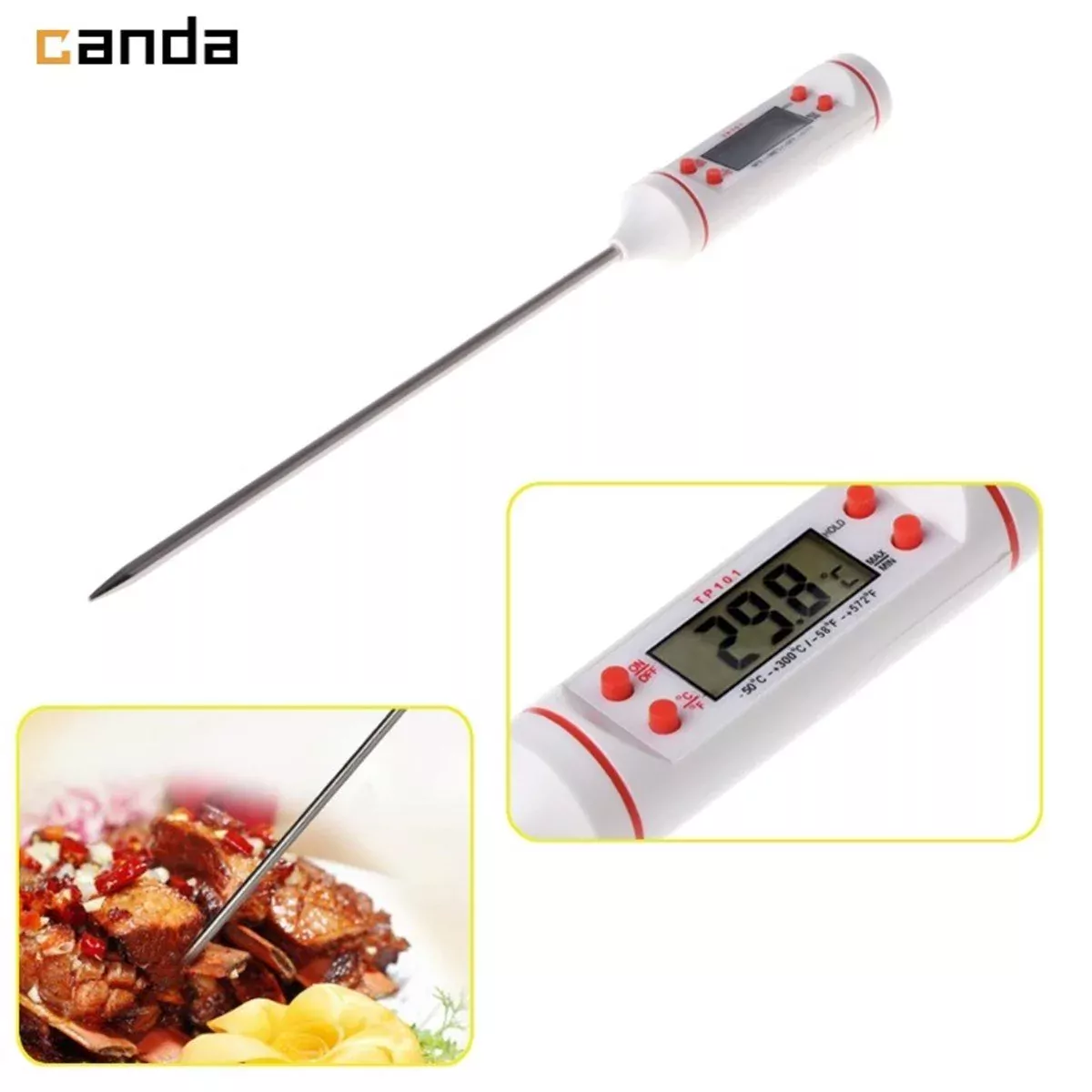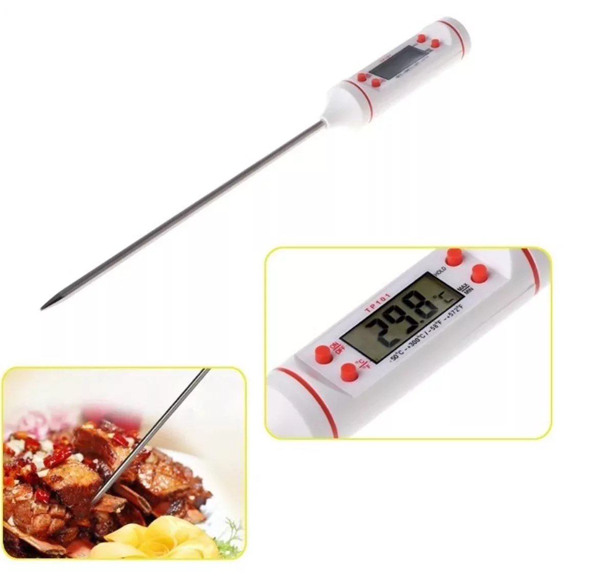 Beyaz Renk TP101 Yemek Gıda Et Yiyecek Barbekü Sıcaklık Ölçer