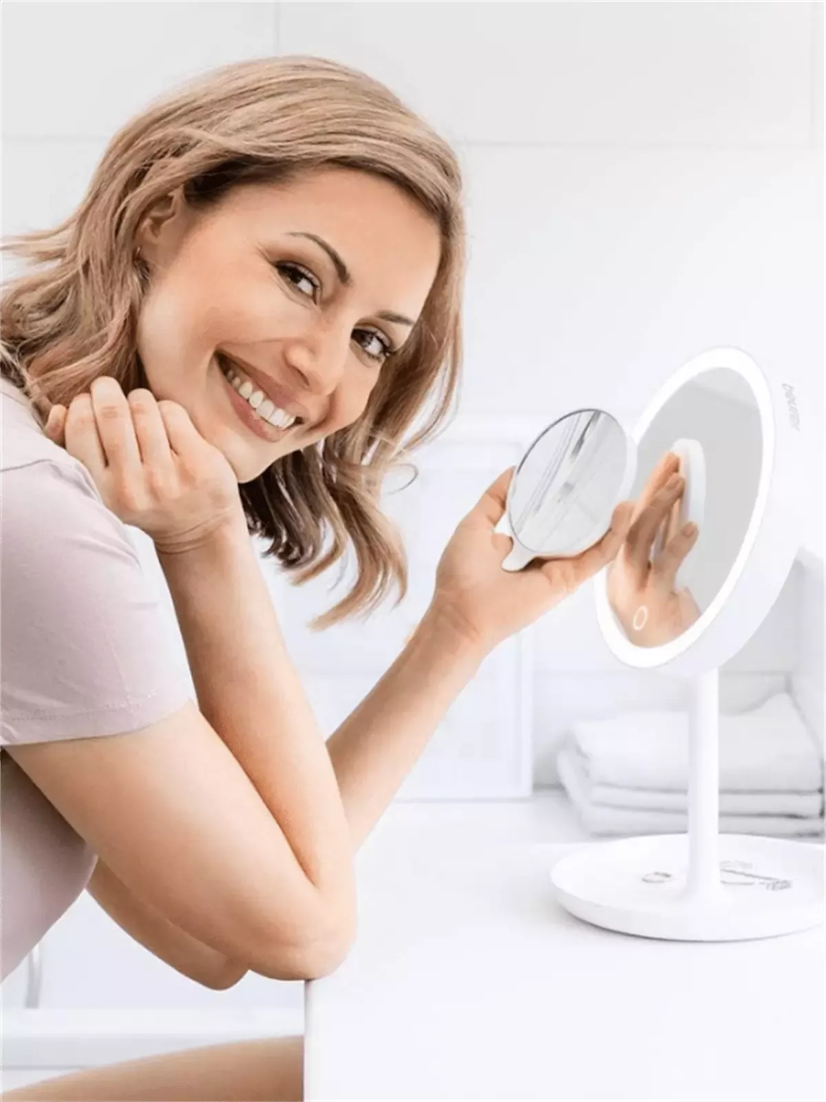 Büyüteçli Dokunmatik Led Işıklı Usb Li Yuvarlak Masa Üstü Makyaj Aynası Makyaj Aynası Ledli
