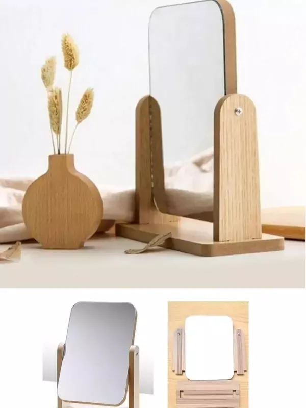 Çift Taraflı Lüx Ahşap Ayarlanabilir Masa, Makyaj, El Aynası Büyük Boy 18 Cm