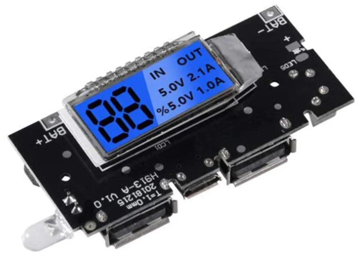 Çift USB Çıkışlı Ekranlı Powerbank Devresi | 5V 2.1A Akıllı Şarj Modülü