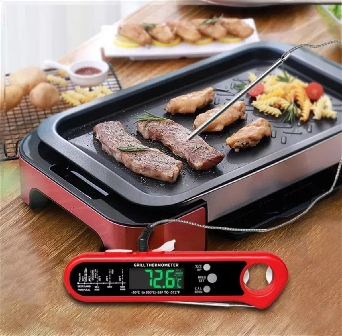 Çıkarılabilir Multi Problu Paslanmaz Dijital Et Yemek Termometresi -50°C-300°C Sıcaklık Ölçer