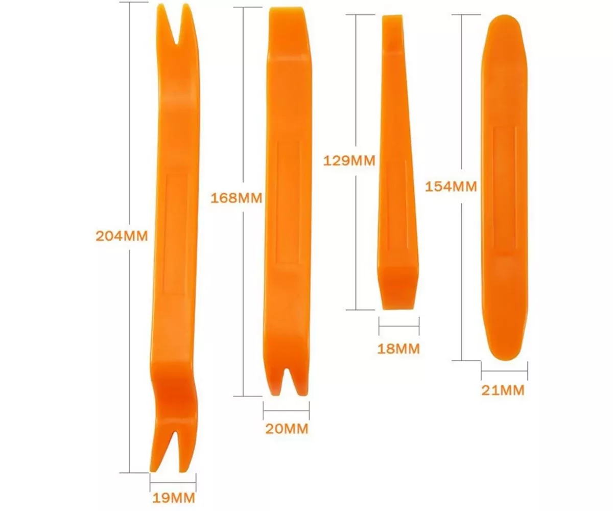 -Sert ve esnek malzeme: sert, esnek naylon aletler, panelleri temizlemek ve açık panel tutma pimlerini açmak için güce sahiptir, ancak aracınızın hassas kaplamasına zarar vermeyecek kadar yumuşaktır.