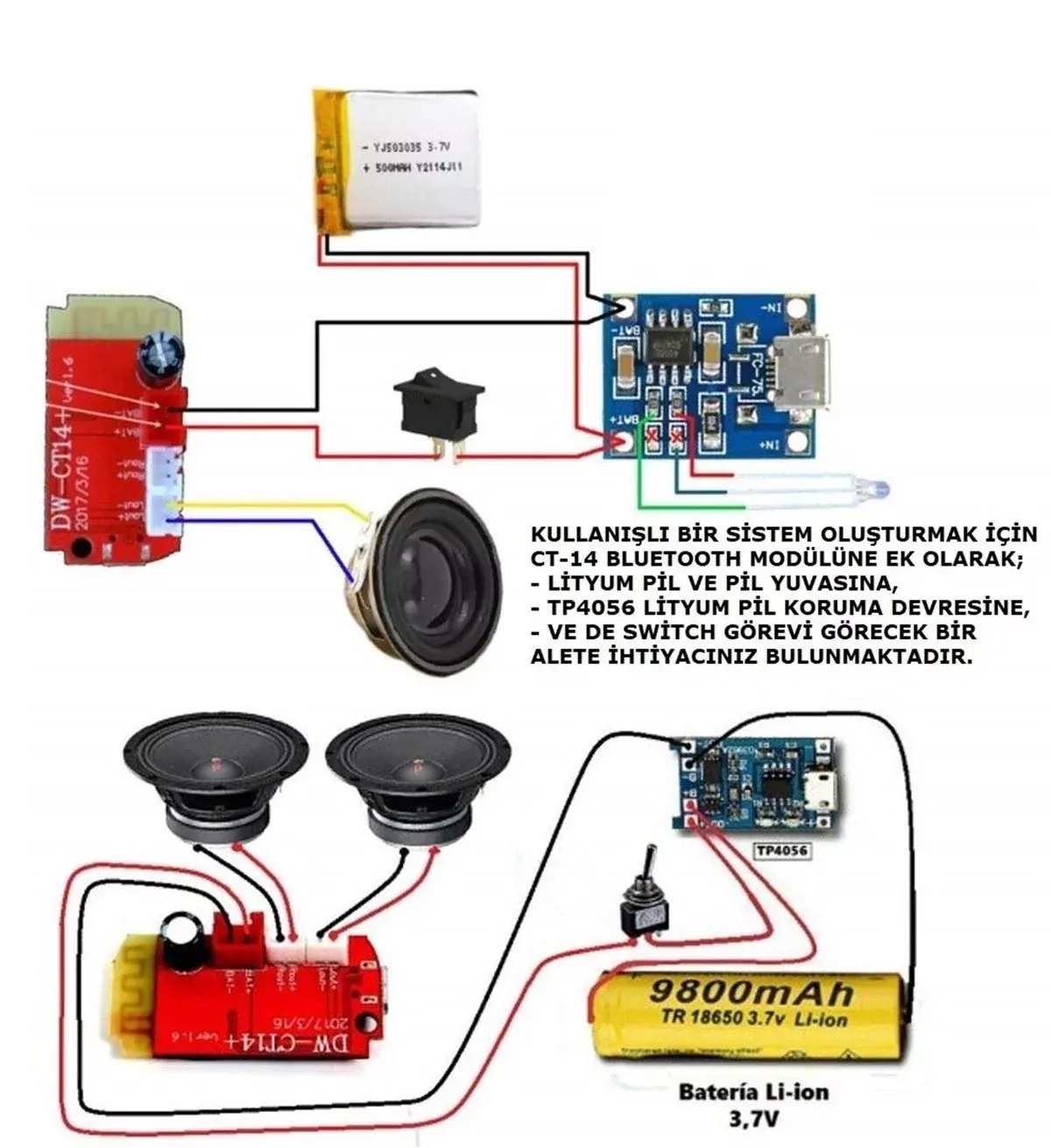 CT-14 Şarj Edilebilir Bluetooth Amfi Devresi