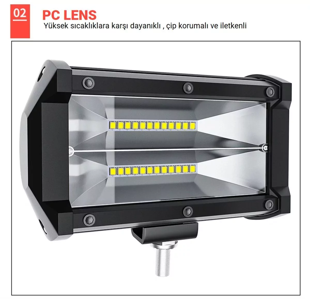 DC 12-24V Su Geçirmez Çift Sıra 24 LED Off Road Spot Lambası 72W