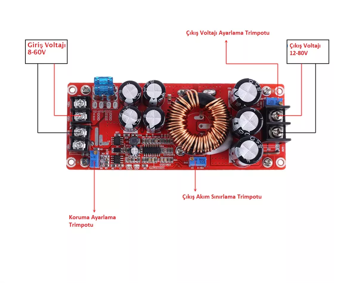 DC DC 12V-80V Voltaj Yükseltici 20A 1200W Voltaj Regülatörü