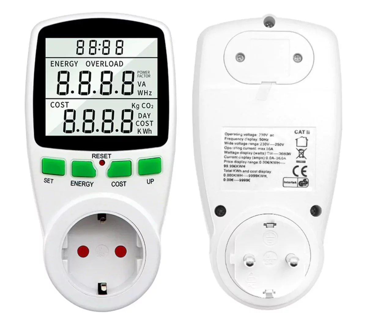 Dijital Wattmetre Enerji Sarfiyat Ölçer Tüketim Ölçer 220V Priz 16A 3680W