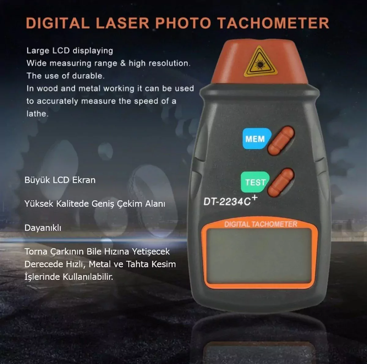 DT-2234C Dijital Lazer Takometre Hız Göstergeli Devir Ölçer