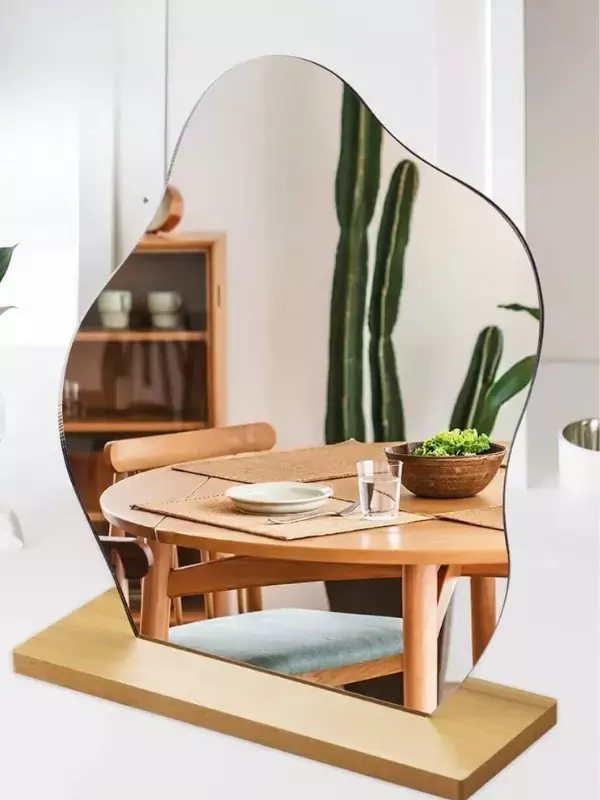 Düzensiz Estetik Asimetrik Ahşap Makyaj Aynası Çerçevesiz, Dekoratif Masa Oturma Odası