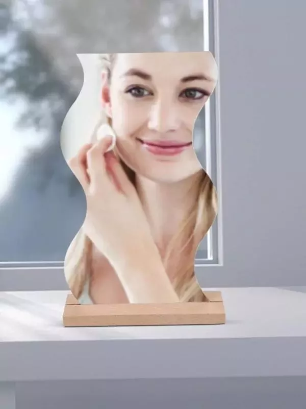 Düzensiz Estetik Asimetrik Ahşap Makyaj Aynası Çerçevesiz, Dekoratif Masa Oturma Odası,Zikzak Ayna
