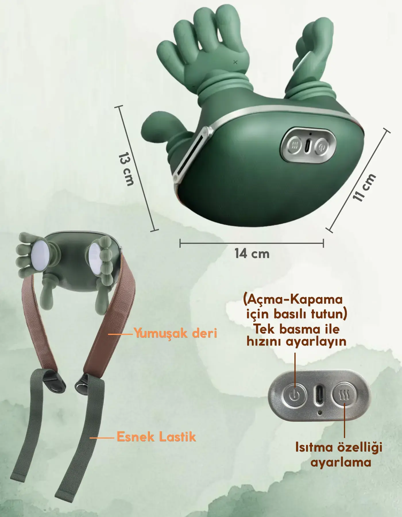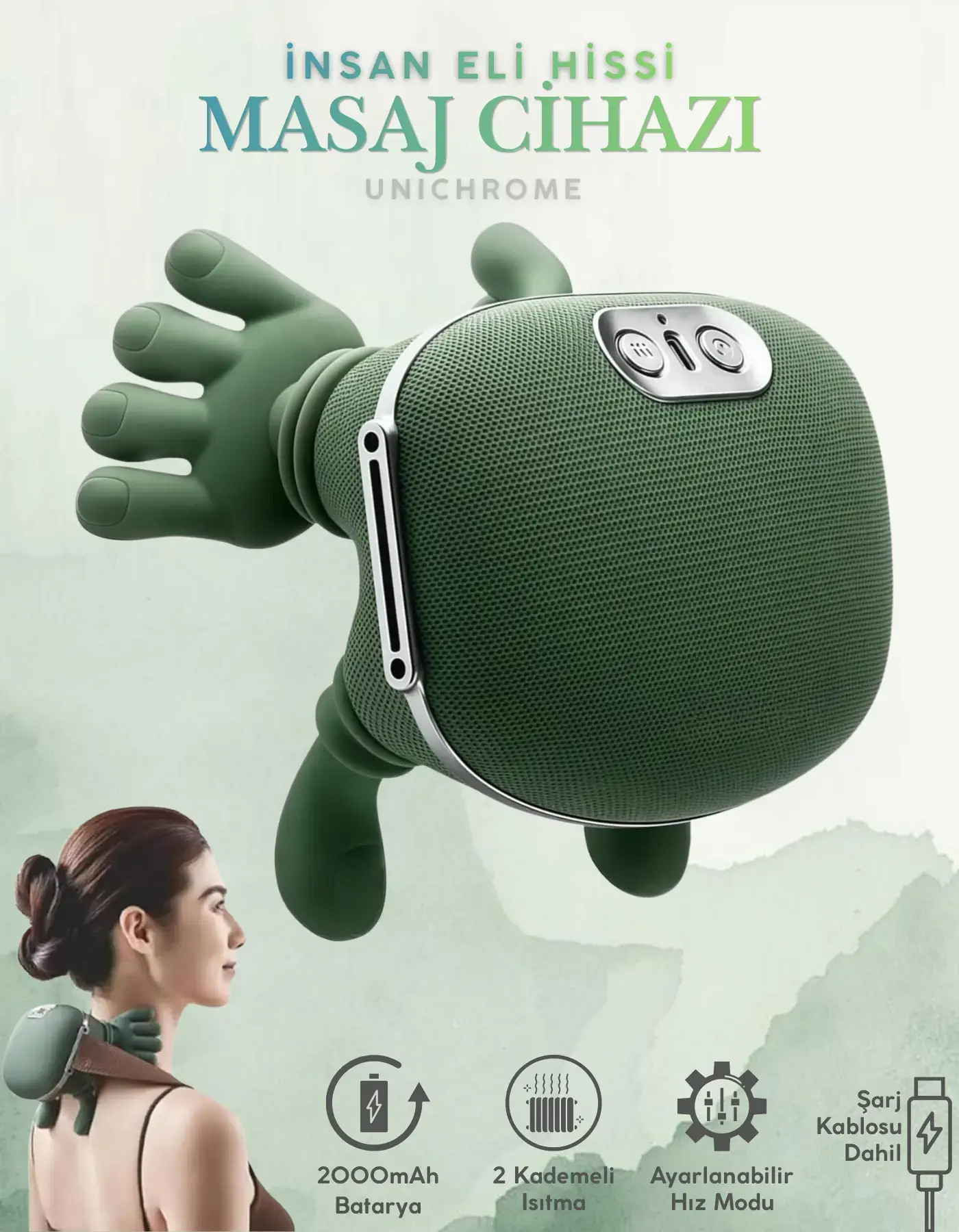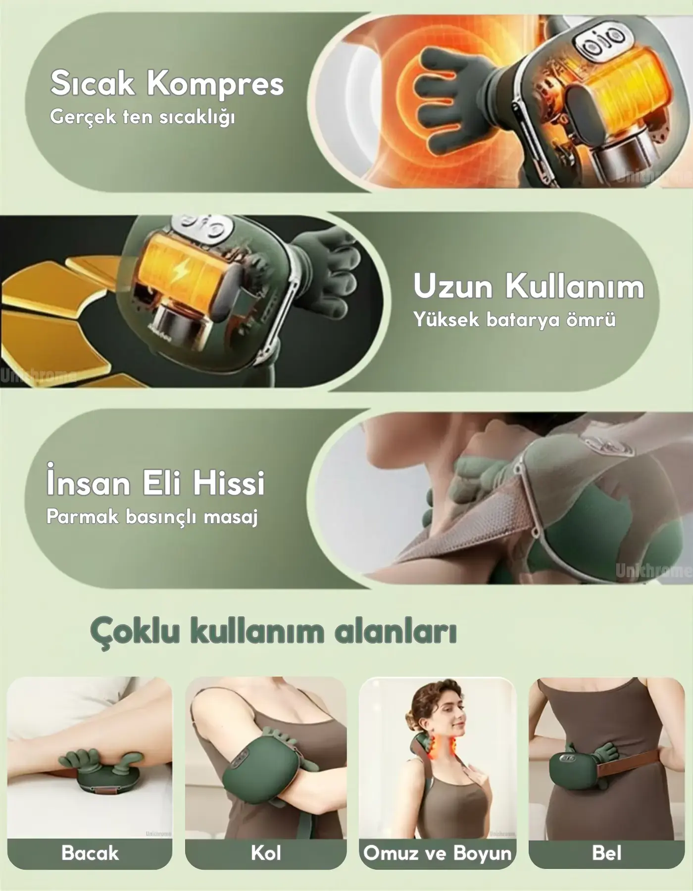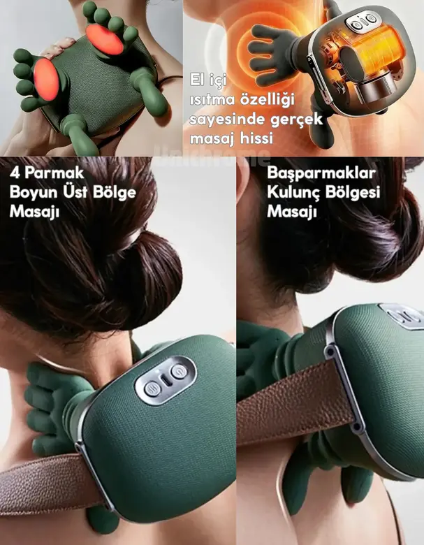 Unichrome Gerçek El Hissi ile Yoğurma Yapan Isıtmalı Şarjlı Masaj Aleti Boyun Sırt Bel Bacak Kol Masajı