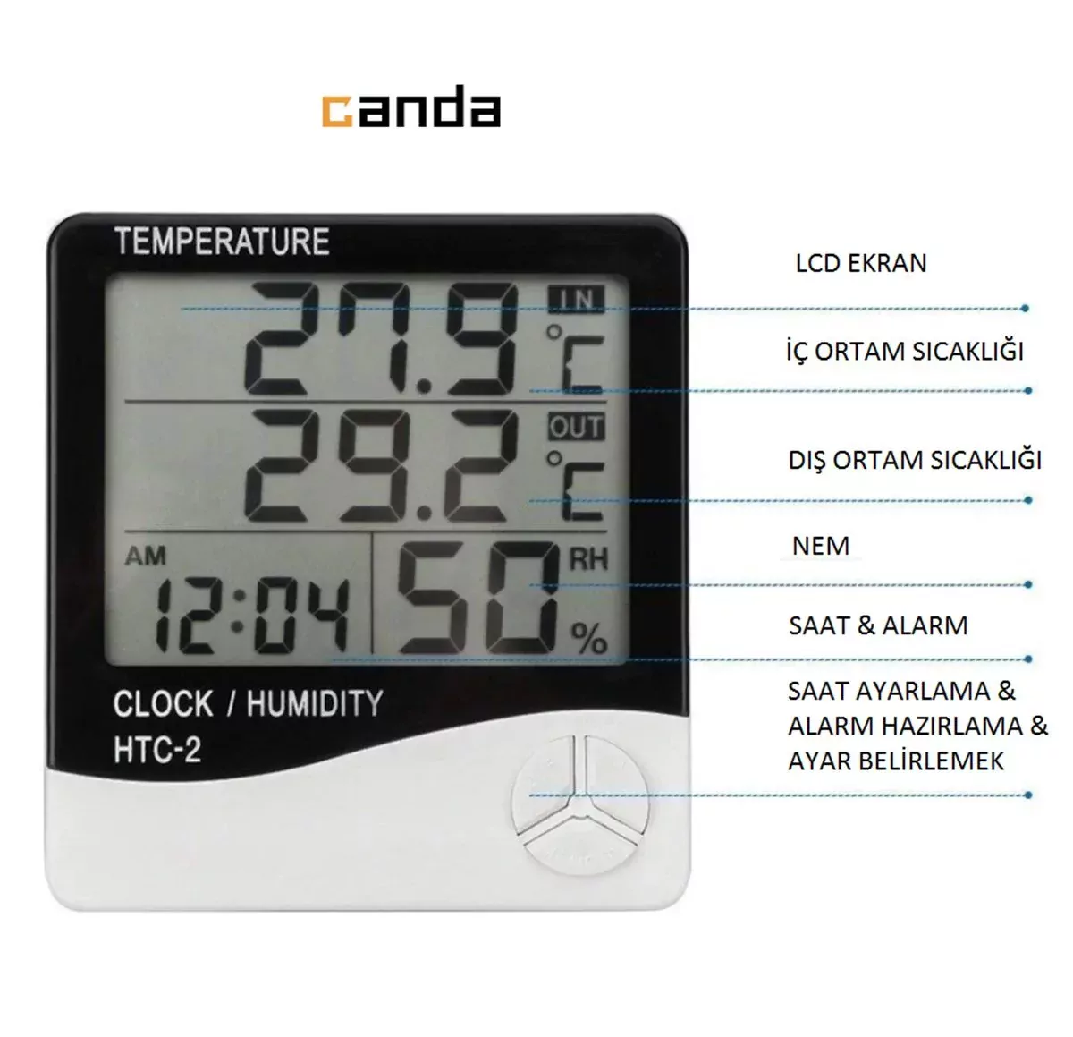 1x HTC-2 Dijital Termometre Higrometre