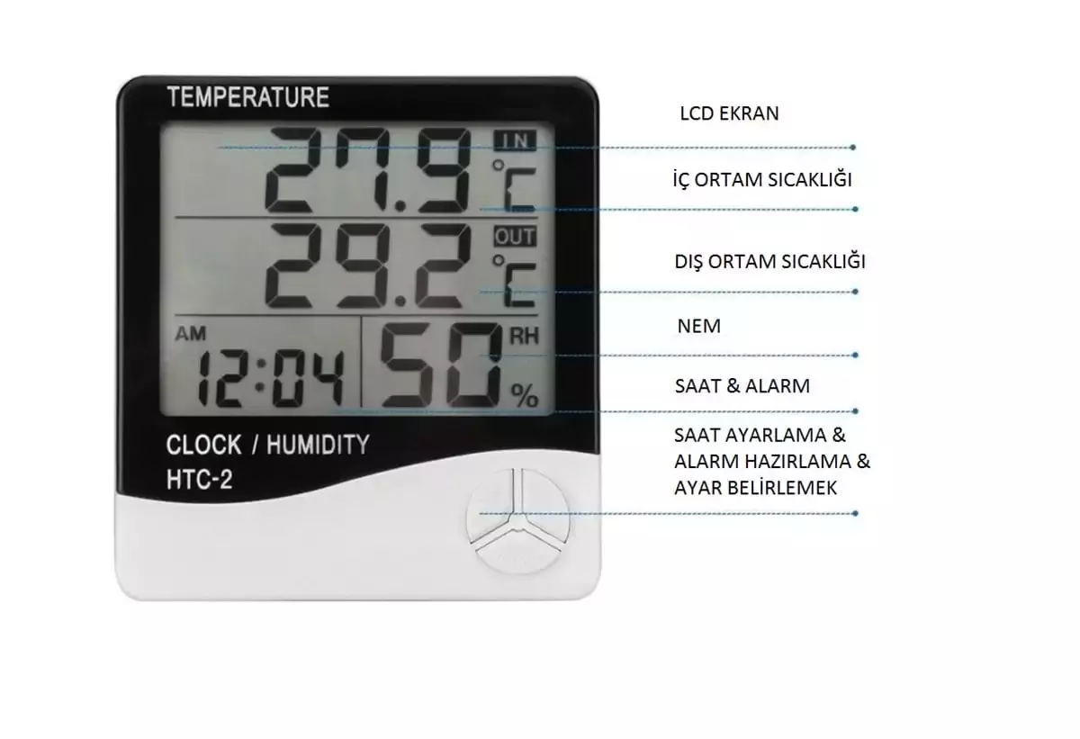 HTC-2 Dijital Termometre Higrometre Sıcaklık Nem Ölçer Saat ve Alarm