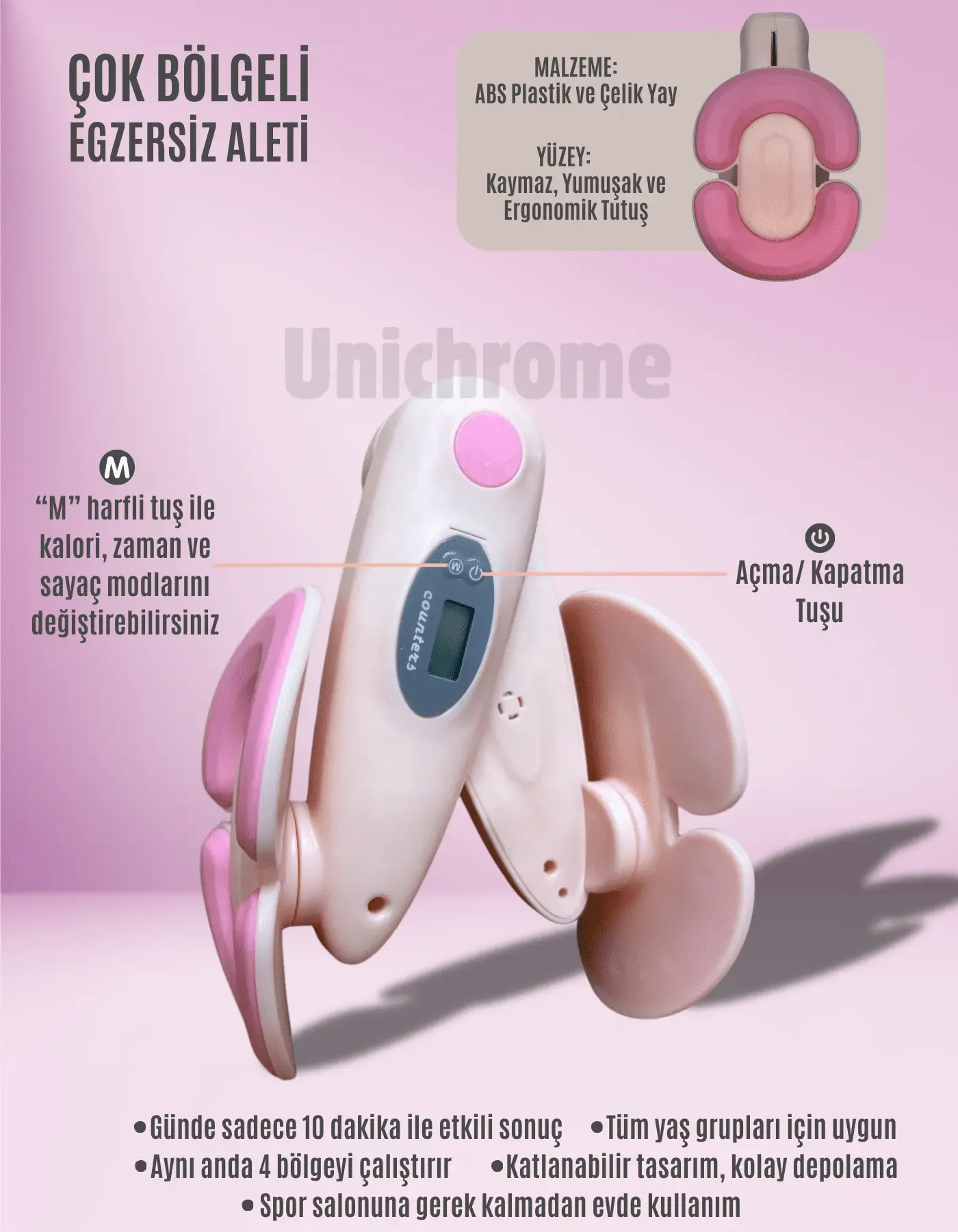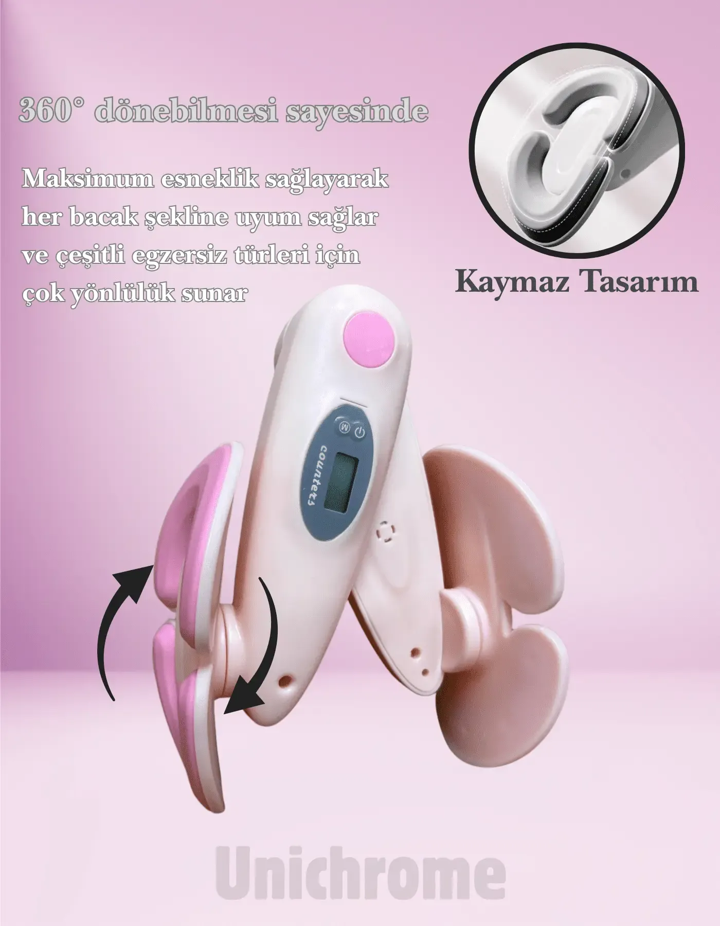 Unichrome İç Bacak Egzersiz Aleti Kegel Pelvik Kas Cihazı Kalça Kol Sıkılaştırıcı Sayaçlı Kalori Ölçer Pembe