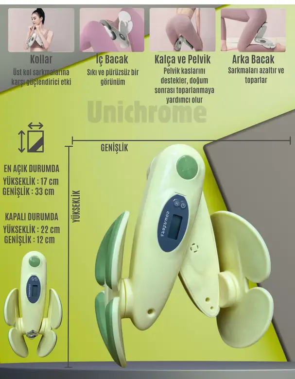 Unichrome İç Bacak Egzersiz Aleti Kegel Pelvik Kas Cihazı Kalça Kol Sıkılaştırıcı Sayaçlı Kalori Ölçer Sarı