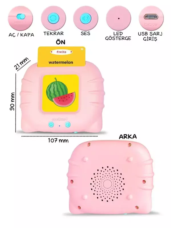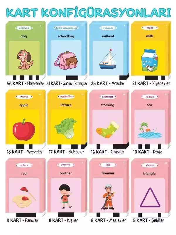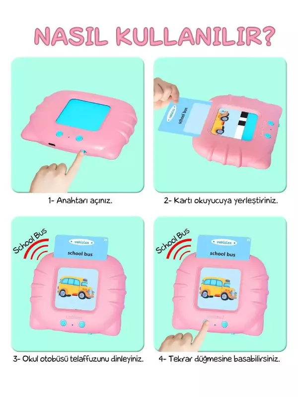 İngilizce Erken Eğitim Kartı 224 Adet Flash Sesli Konuşan Kartlar - Çok Renkli