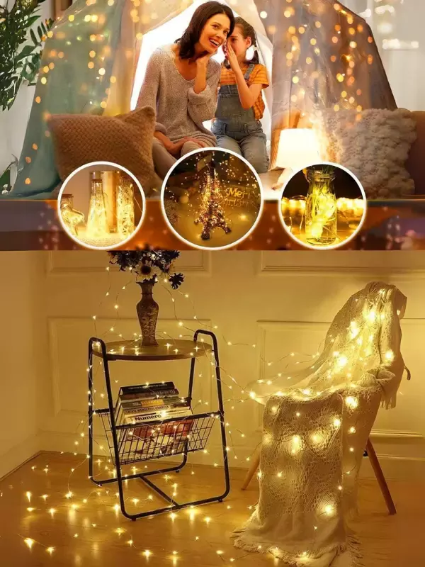 - Su Geçirmez, Güçlü ve Esnek: Perde ışıkları IP44 su geçirmezdir (lütfen USB ara yüzünün su geçirmez olmadığını, nemli veya yağmurlu ortamlarda kuru tutulması gerektiğini unutmayın). Ayrıca, ışıklar yumuşak ve esnek gümüş tellerden yapılmıştır, bu da onları her türlü şekle sokmanıza veya herhangi bir yere sarmanıza olanak tanır.