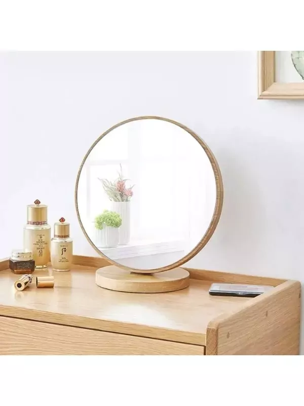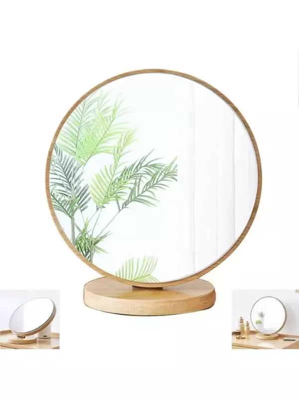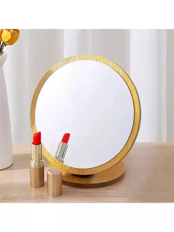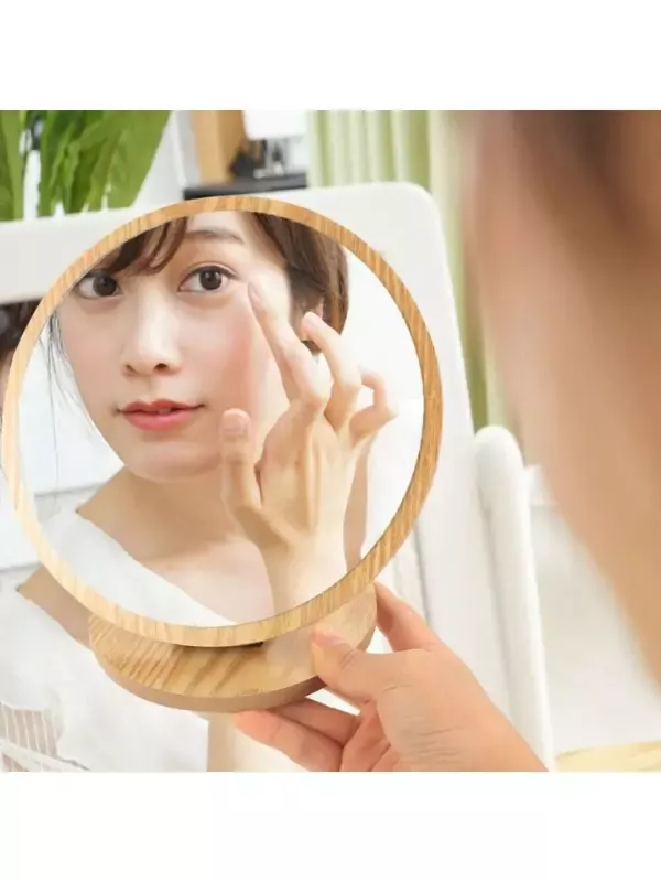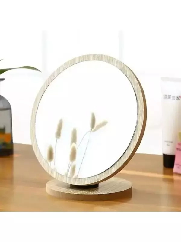 Masaüstü Ayna Eğimi Ayarlanabilir Menteşeli 20 Cm Yuvarlak Görünümlü Ahşap Makyaj Cilt Bakımı Ayna