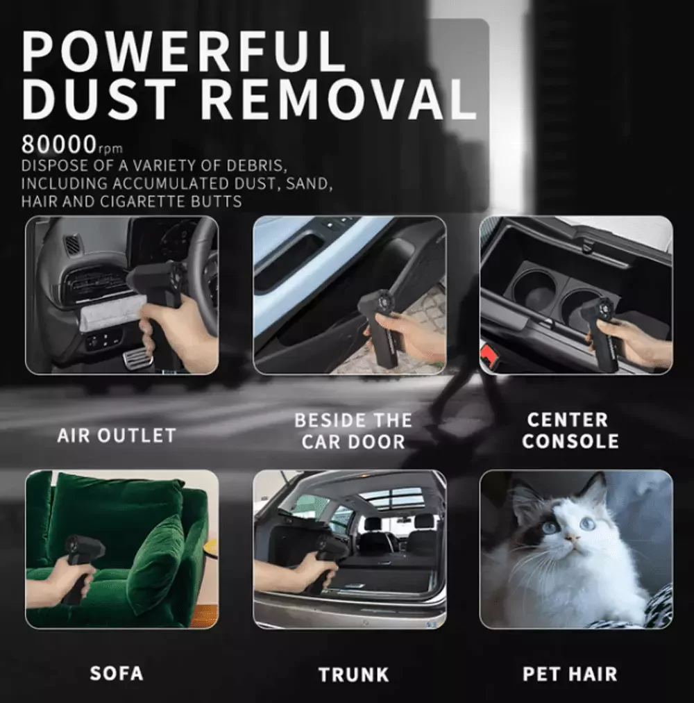 Crossgun'un en yeni ürünü, ultra yüksek LED aydınlatmalı, özel işlenmiş plastik dış tasarımı ve 130000 + rpm'ye kadar motor hızına sahip güçlü bir hava üfleyicidir. Ürünümüz 3 farklı mod hız düğmesi sayesinde istediğiniz verimliliği almanız sağlanmıştır. İlk hız 30000 rpm'dir, İkinci hız 60000 rpm'dir ve, Üçüncü hız 80.000 rpm'dir. Maksimum 130000 ±% 10 RPM 2500mAh * 2 (18650) yüksek yoğunluklu şarj edilebilir lityum iyon pil ile sayesinde 2 saate kadar kullanım sağlanmaktadır. Type C sarj kablosu kutu paket içeriğinde bulunmaktadır. 120Wh fırçasız motor, saniyede 45 metreden daha yüksek bir rüzgar hızında 130 g hava itişi üretir. Led aydınlatmaözelliği sayesinde 30 metreye kadar aydınlatma elde edebilirsiniz. Ayrıca SOS yardım aydınlatması da bulunmaktadır. Tek el ile kolay ve ergonomik kullanım sağlamasının yanında sadece 248 gr ağırlığındadır.