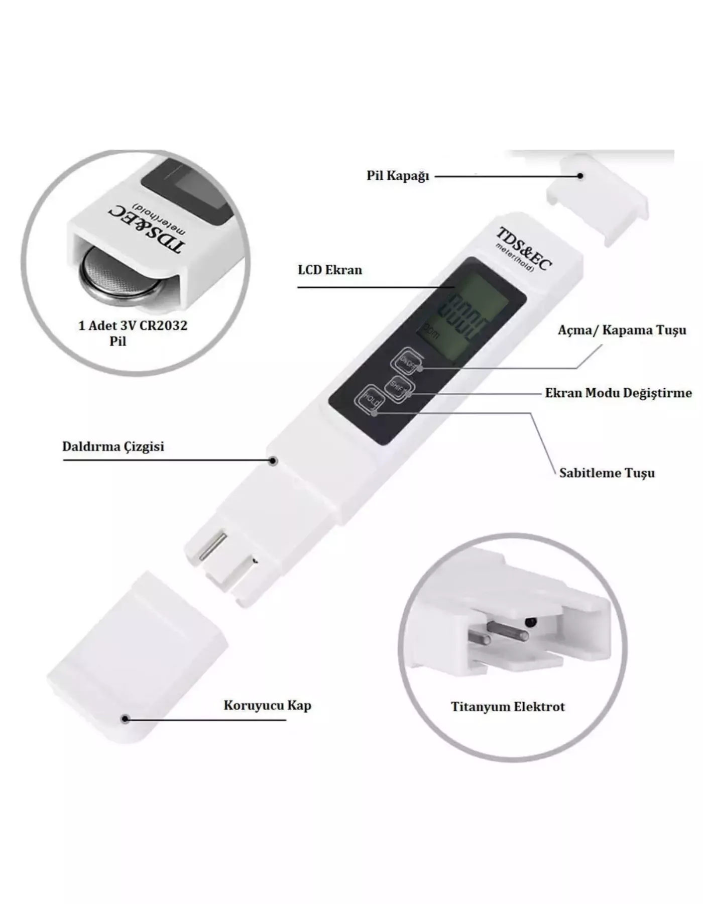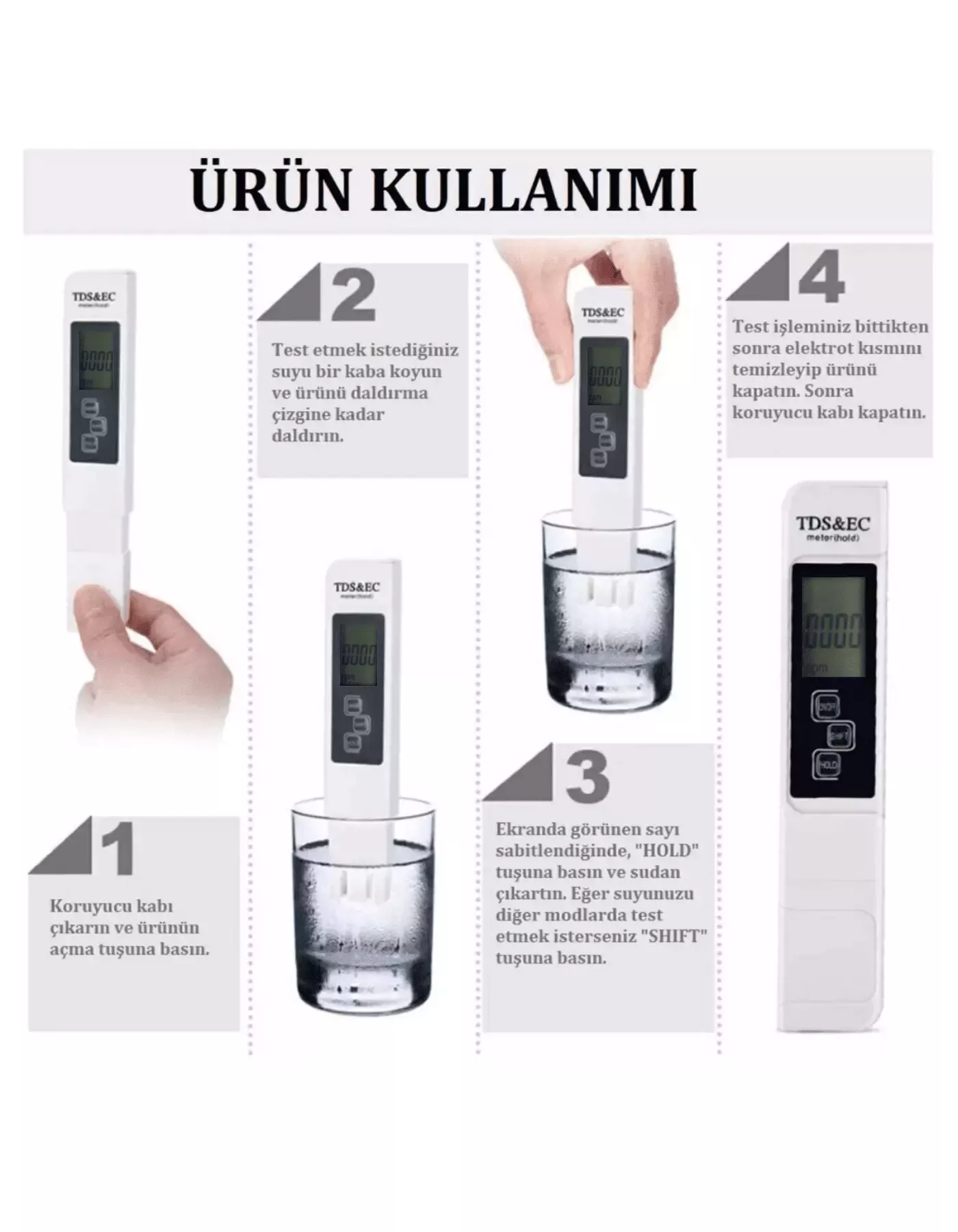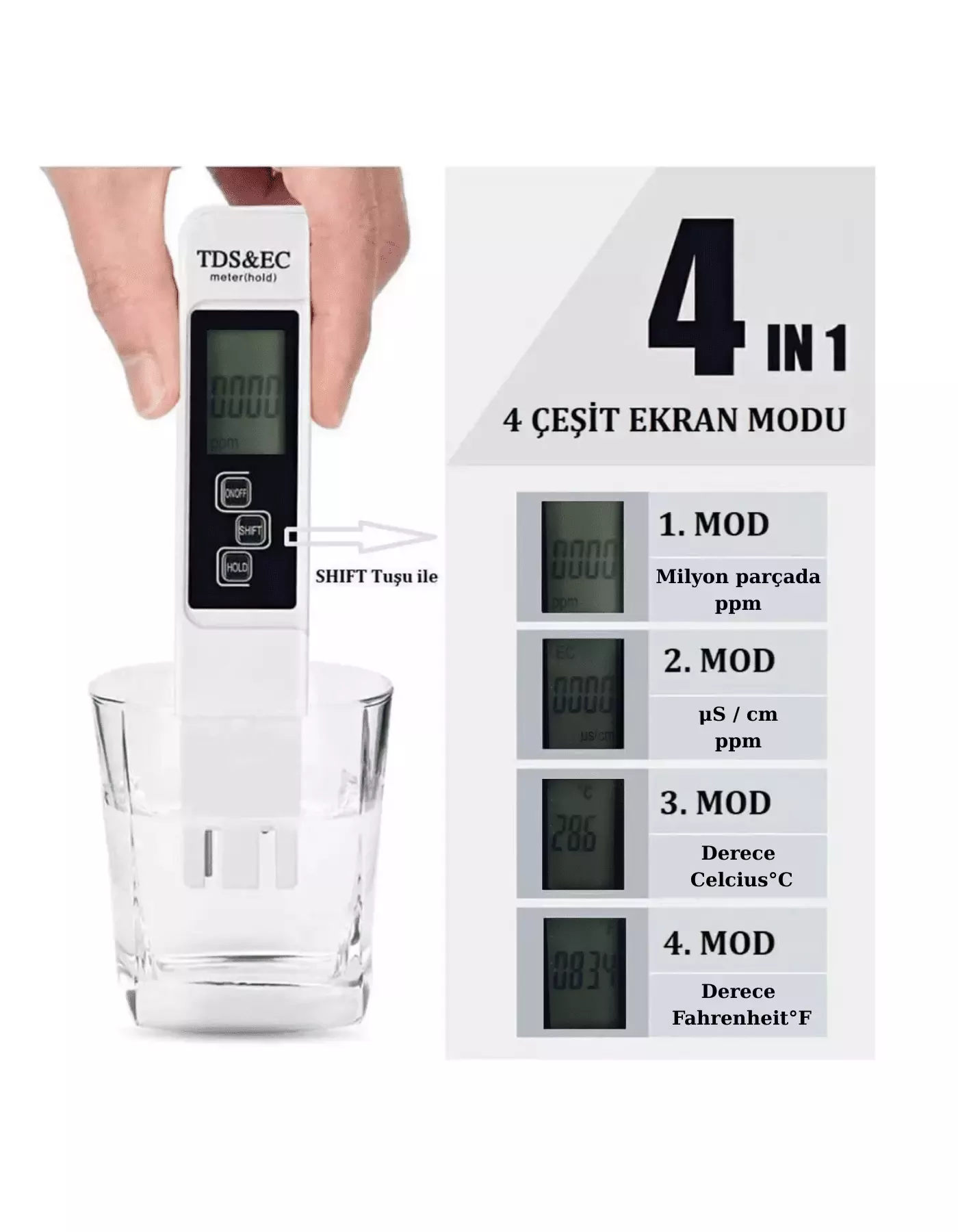 Yeni model çok fonksiyonlu tasarımı ile Multifonksiyonel TDS iletkenlik ölçer, elektriksel iletkenliği ölçmek için ideal bir cihazdır.