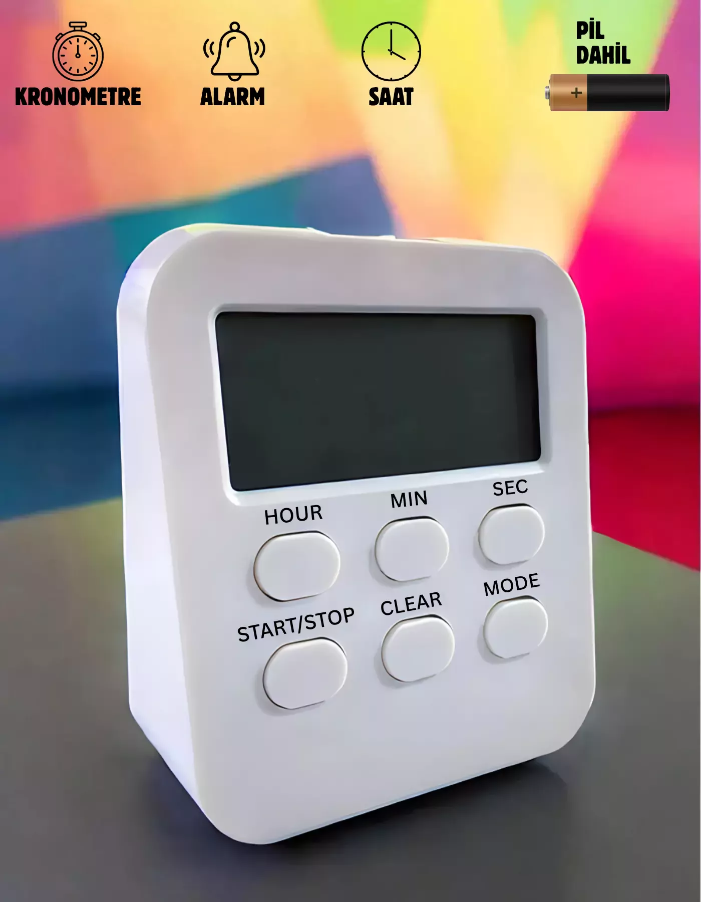Unichrome Öğrenci Ders Çalışma Saati Kronometreli Araç Saati Mutfak Bozdolabı Magnet Saat Zamanlayıcı Beyaz