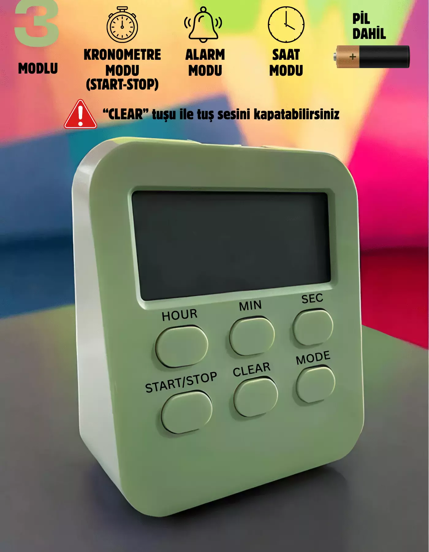- Çok Amaçlı Kullanım: Ders çalışırken, yemek yaparken veya herhangi bir aktiviteyi zamanlarken size eşlik eder, zamanınızı verimli kullanmanıza yardımcı olur.