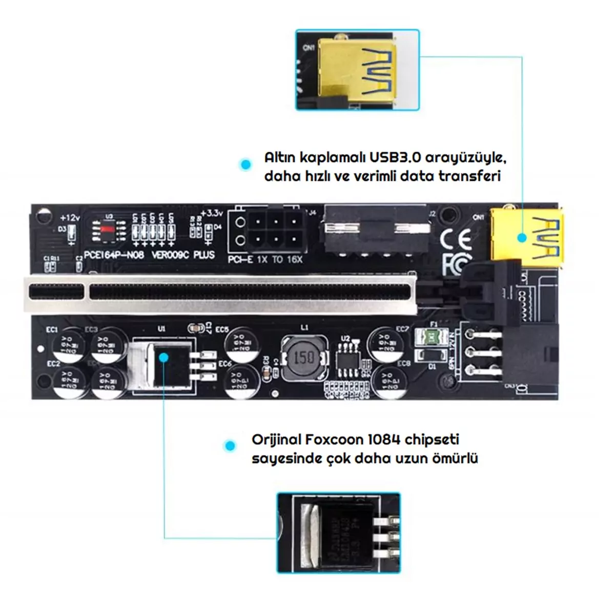 ZAUSS OEM Riser V009C PLUS Yükseltici PCI-Express X1 to X16 Mining Ethe