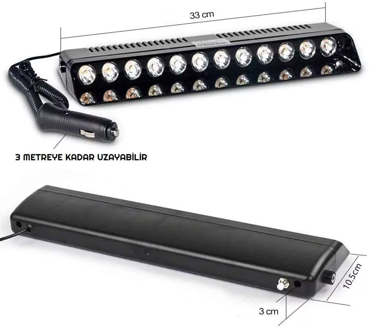 S12 12V Çakmaklık Girişli Cam Içi Vantuzlu Polis Çakar Ledi Kırmızı Mavi Beyaz 12 Ledli