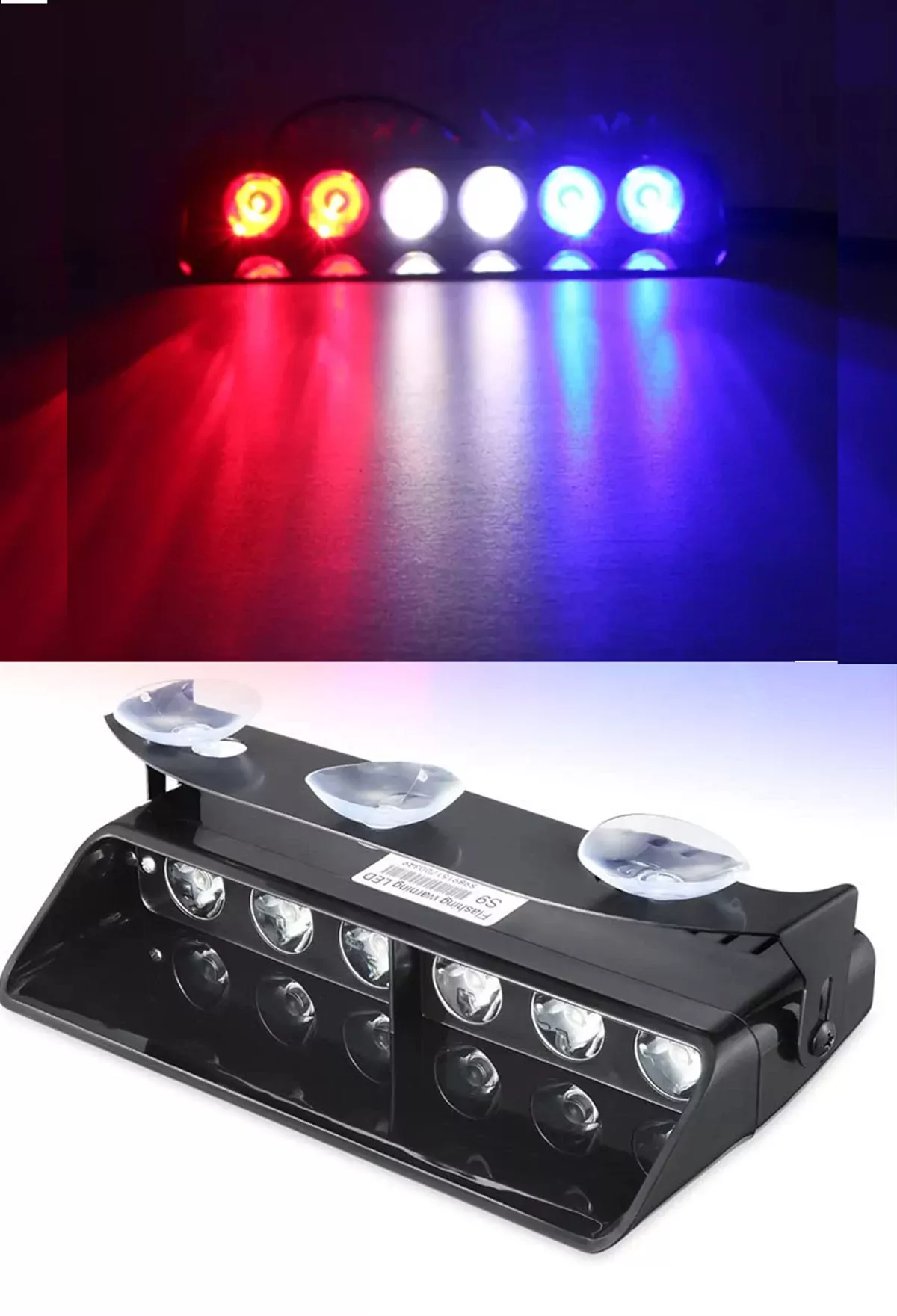 S6 12V Çakmaklık Girişli Cam İçi Vantuzlu Yanıp Sönen Ledi Mavi Kırmızı Beyaz 6 Ledli