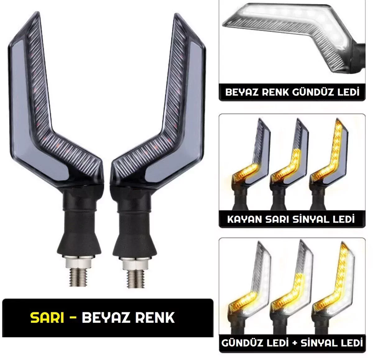 Sarı-Beyaz Renk Motosiklet Sinyal Ledi Takımı Kayar DRL Sinyal Işığı