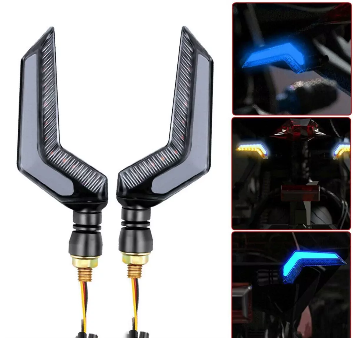 Sarı-Mavi Renk Motosiklet Sinyal Ledi Takımı Kayar DRL Sinyal Işığı