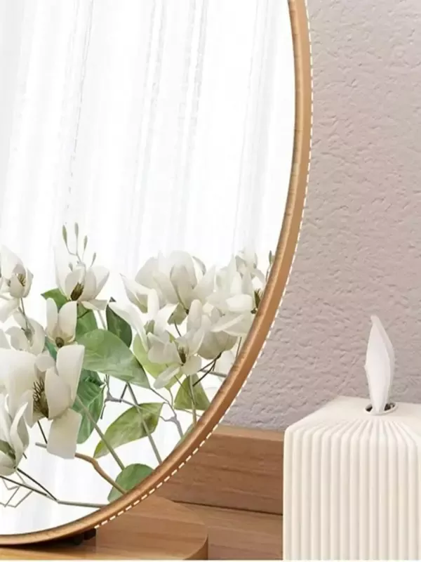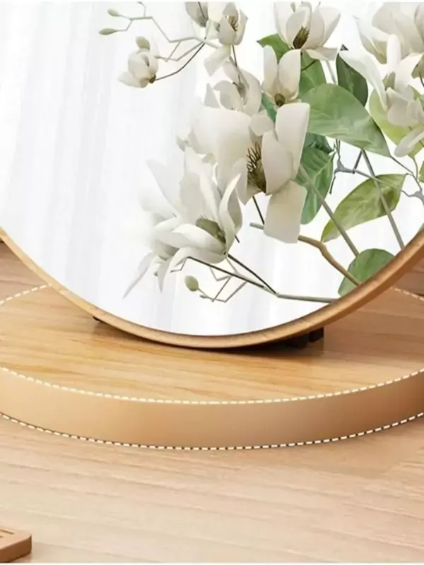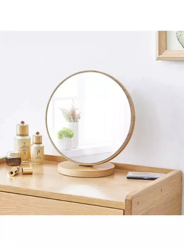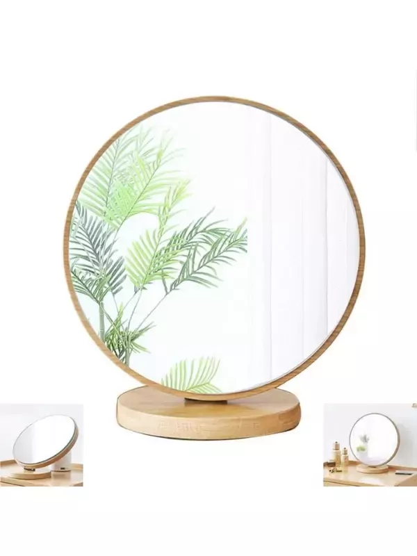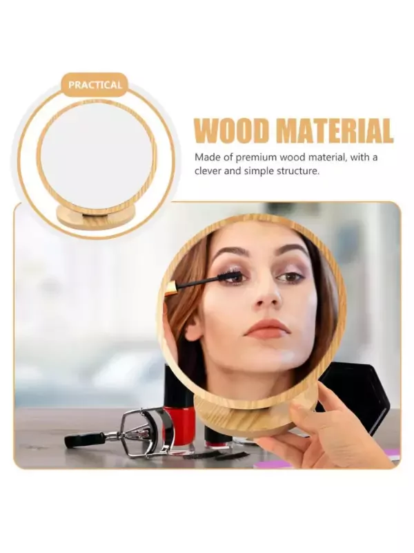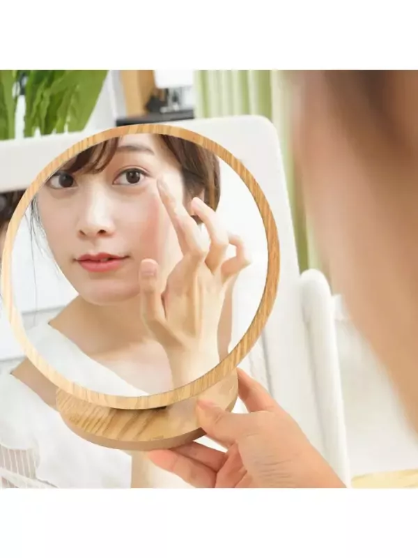 Şık Tasarım Menteşeli Eğimi Ayarlanabilir 13 cm Yuvarlak Masaüstü Ahşap Makyaj Aynası