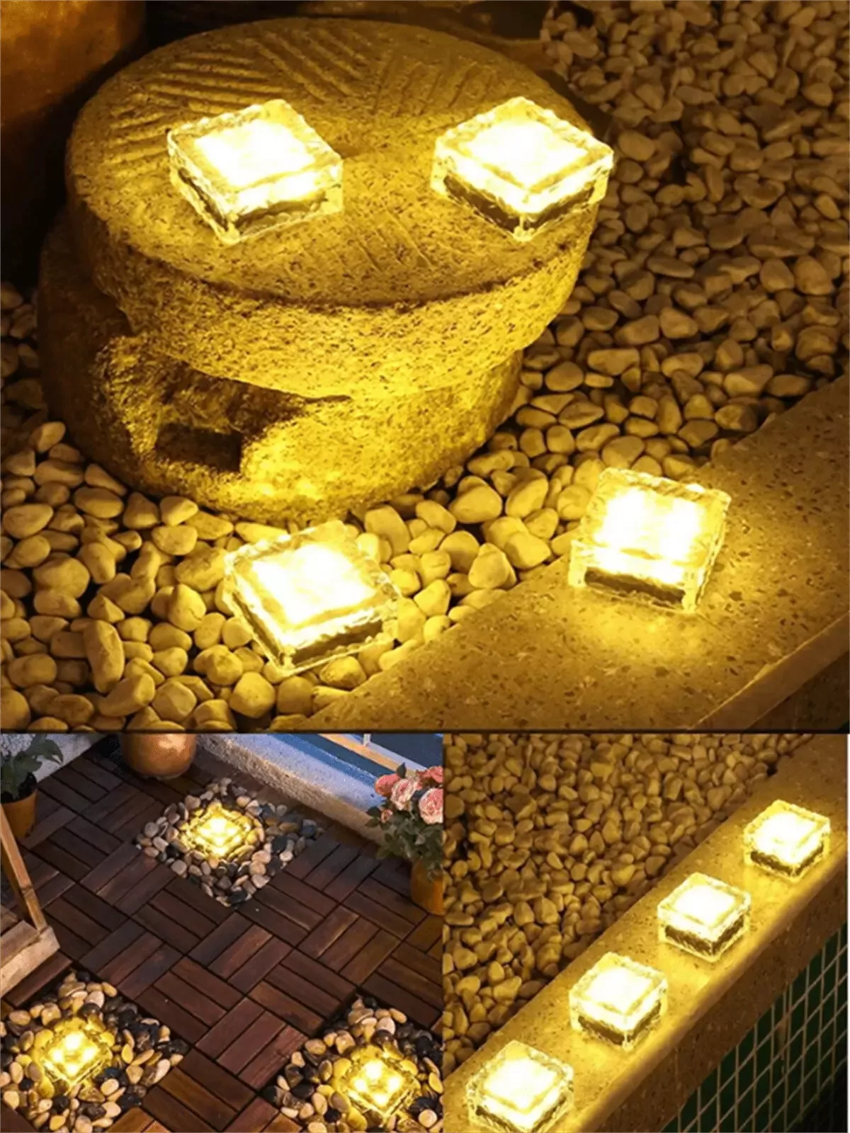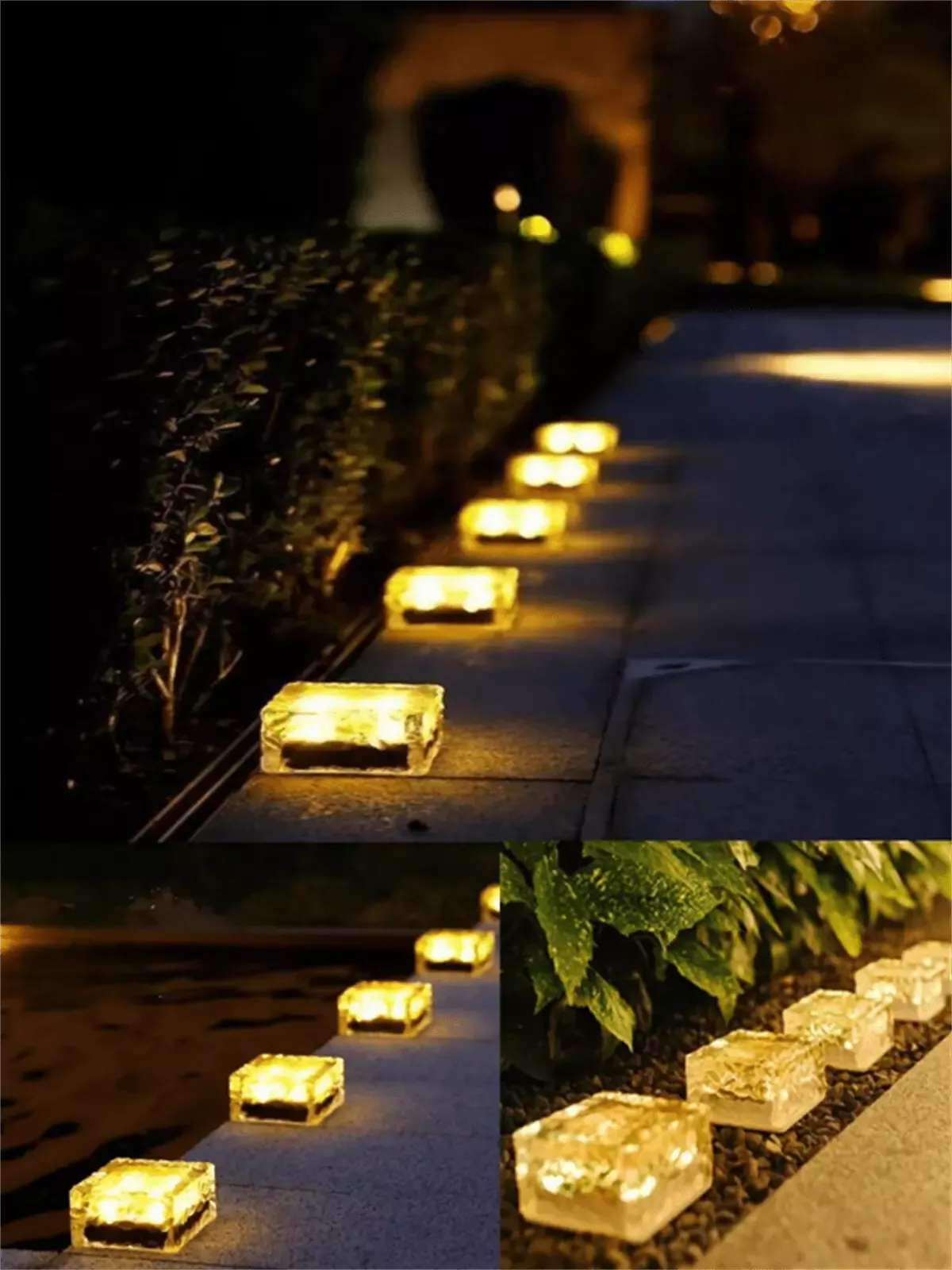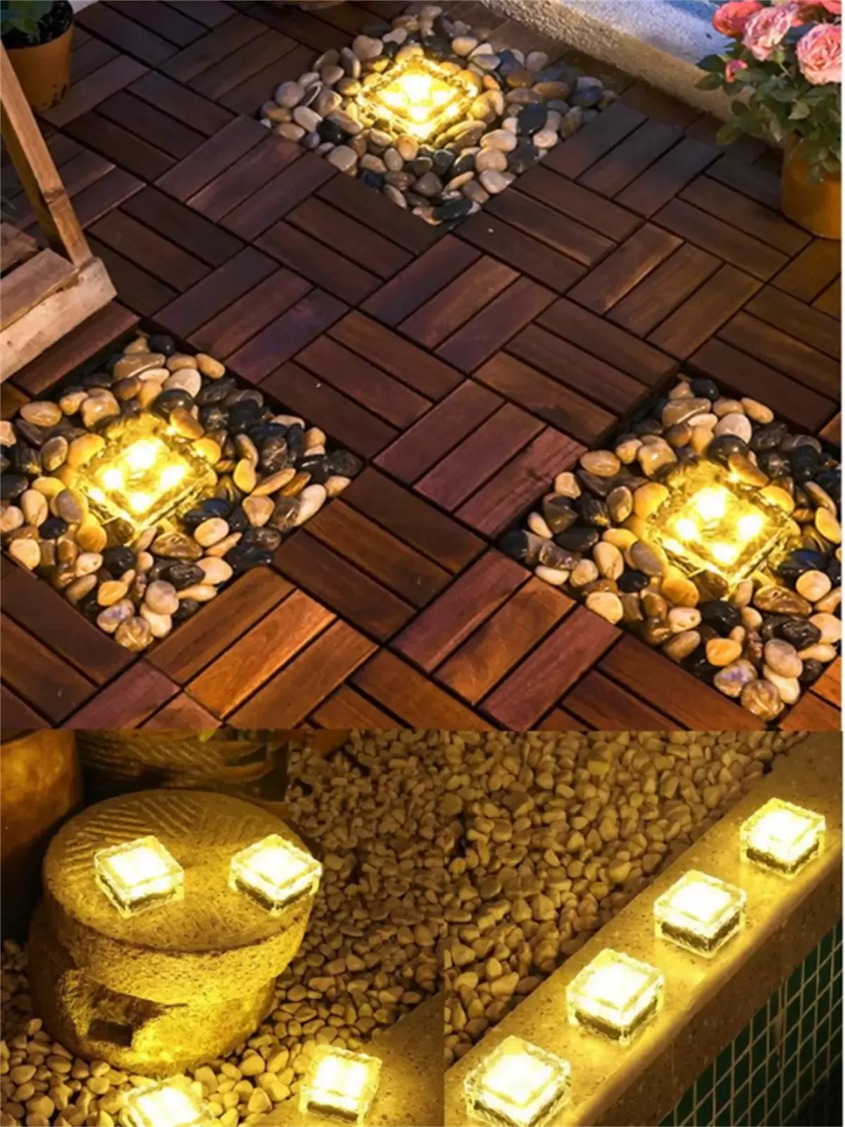 Solar Güneş Enerji Buz Cam Zemin Aydınlatma Dekoratif Bahçe Gün Işığı 4Ledli Lamba